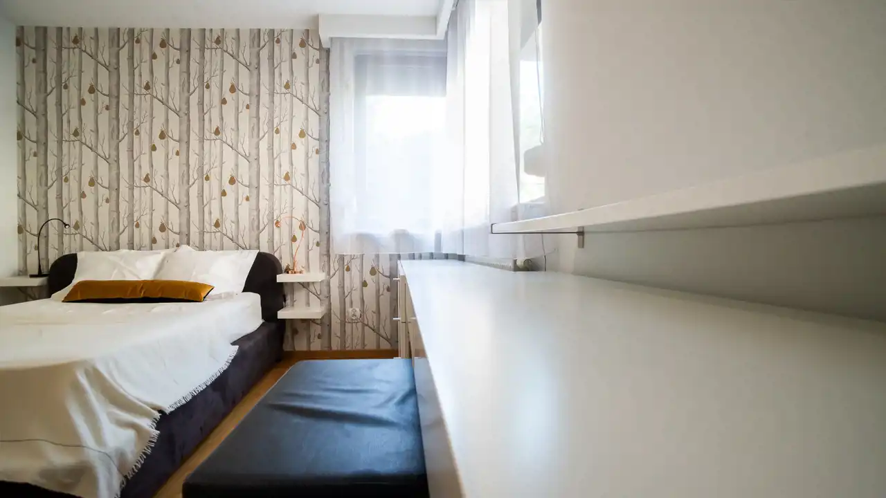 - W sypialni oraz na przedpokoju pojemne szafy wnękowe