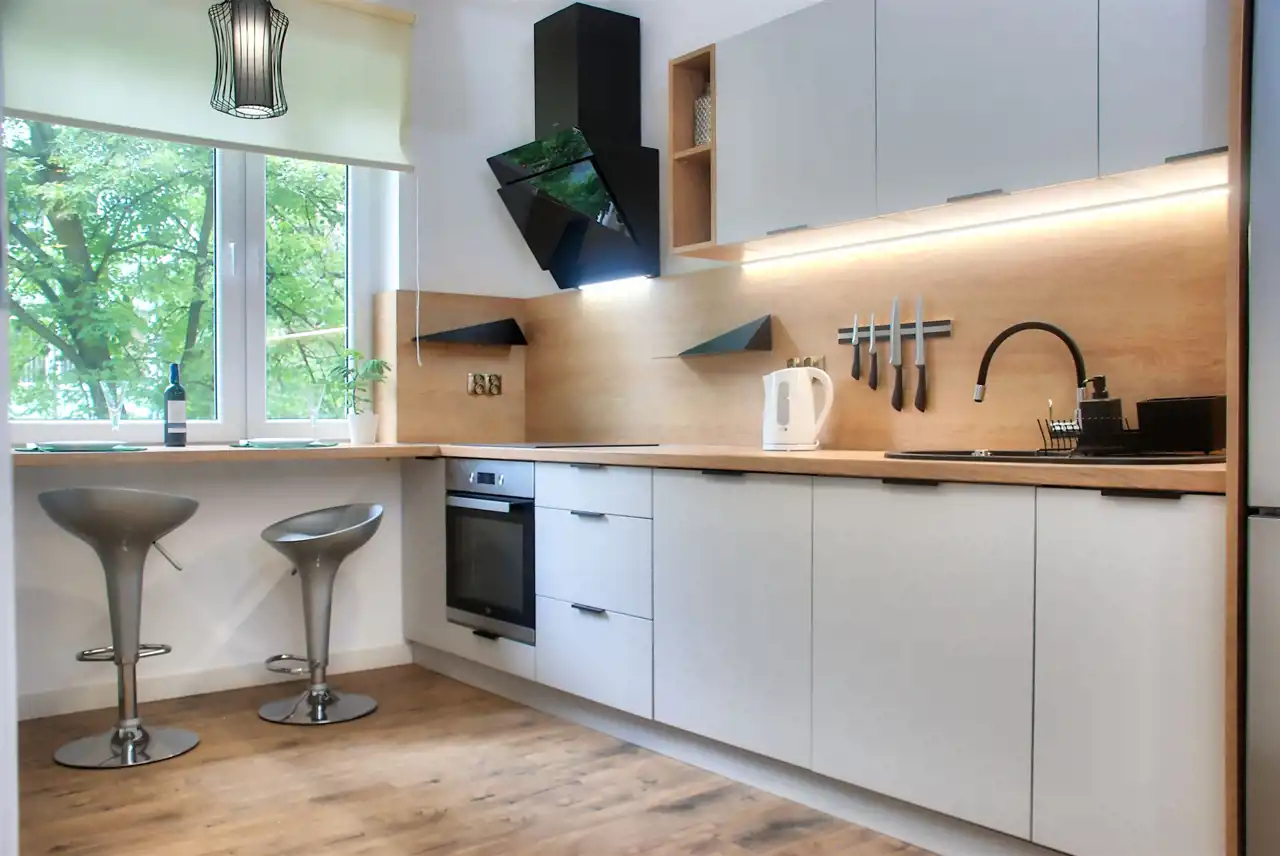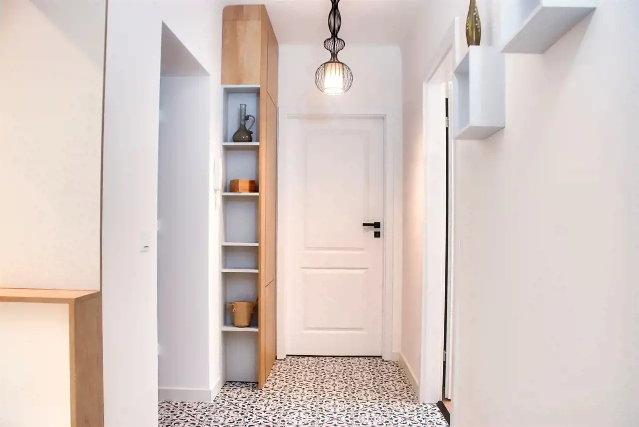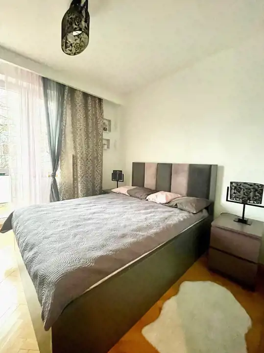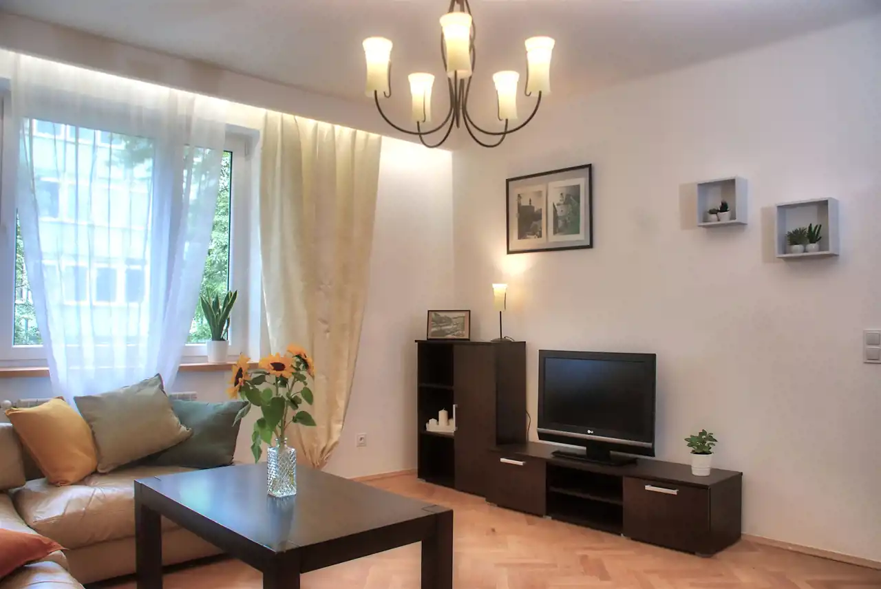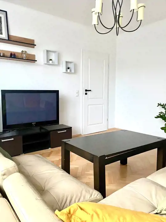 Dwa osobne, umeblowane pokoje ( salon i sypialnia), osobna jasna kuchnia, spora łazienka i wygodny przedpokój.