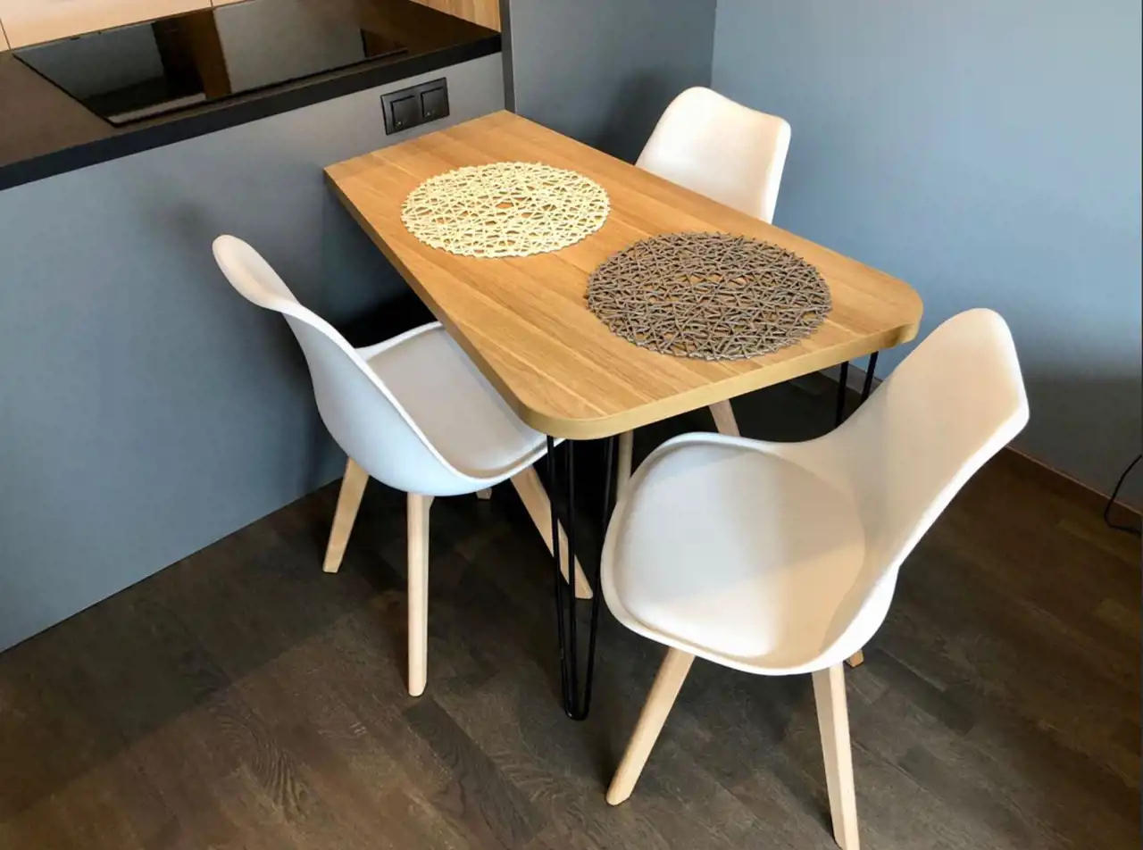 Mieszkanie usytuowane jest na 4 piętrze w budynku Atal Residence . Składa się z salonu połączonego z aneksem kuchennym, sypialni, łazienki, przedpokoju oraz pomieszczenia gospodarczego; całkowita powierzchnia 37 m2 . W mieszkaniu jest ogrzewanie z sieci miejskiej MPEC. Podłogi wykonane są z dębowych desek.