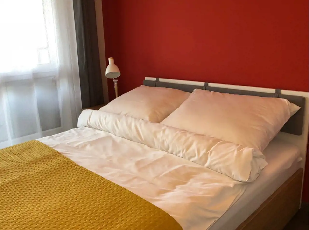 • sypialnia: podwójne łóżko, duża szafa, szafka przy łóżku, kołdra, poduszki oraz pościel