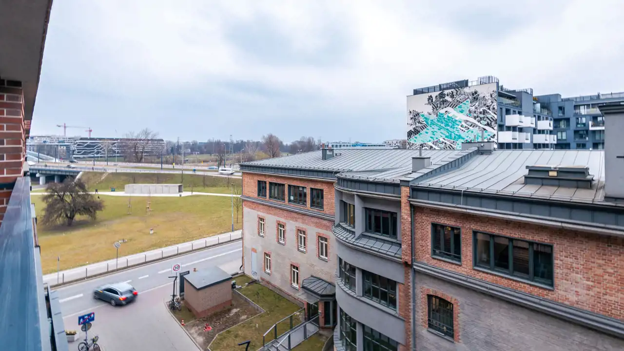 Bliskość Wisły i bulwarów zapewnia dostęp do terenów spacerowych, a dostęp do tarasu widokowego w budynku dodatkowo zwiększa komfort codziennego użytkowania. W pobliżu znajdują się również przystanki komunikacji miejskiej oraz stacja szybkiej kolei aglomeracyjnej co umożliwia szybki dojazd do centrum i innych części miasta.