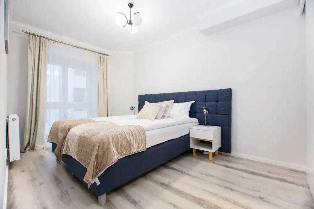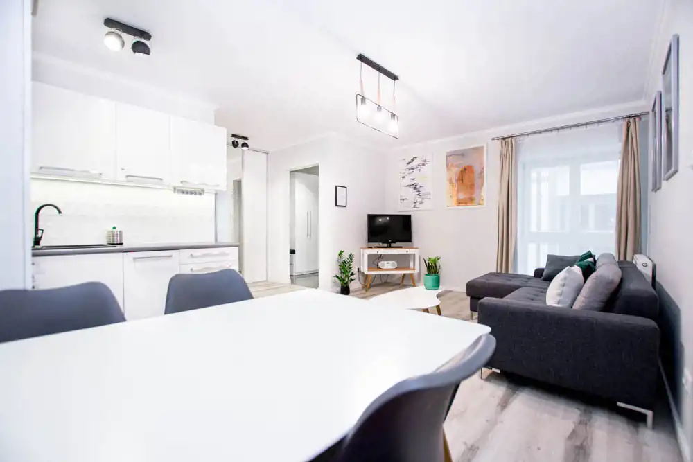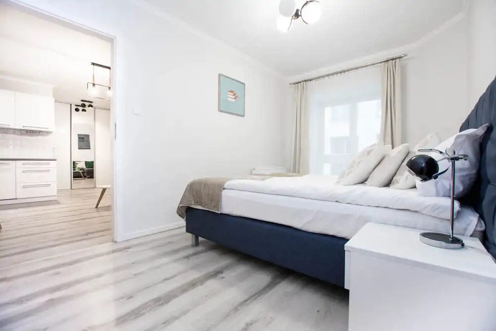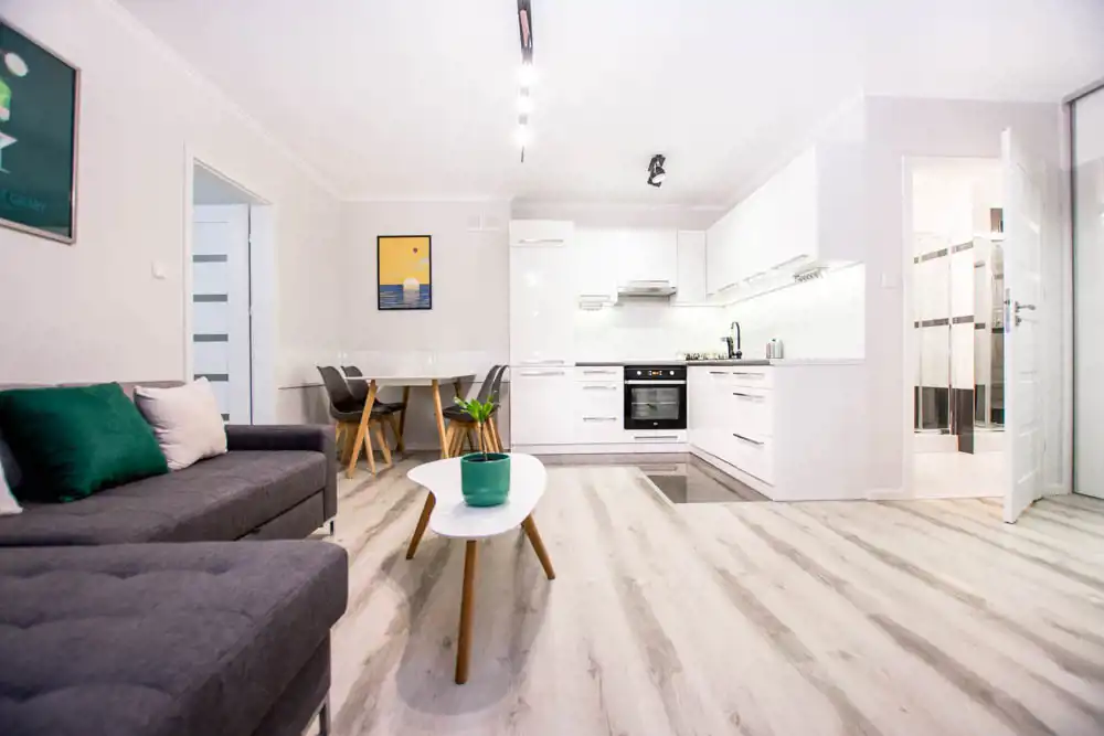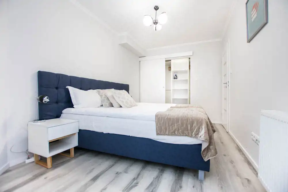 Nieruchomość zlokalizowana w nowoczesnej oficynie z windą, co zapewnia cisze i komfort użytkowania. Kompletnie wyposażony aneks kuchenny (płyta grzewcza, piekarnik, lodówka z zamrażarką, zmywarka). W salonie kącik telewizyjny z rozkładaną sofą oraz stół jadalniany dla 4 osób. Łazienka z prysznicem i pralką. Przestronna sypialnia pozwala na zaaranżowanie miejsca do pracy w domu. Garderoba w sypialni oraz pojemna szafa w zabudowie w salonie zapewniają dużo miejsca na przechowywanie.