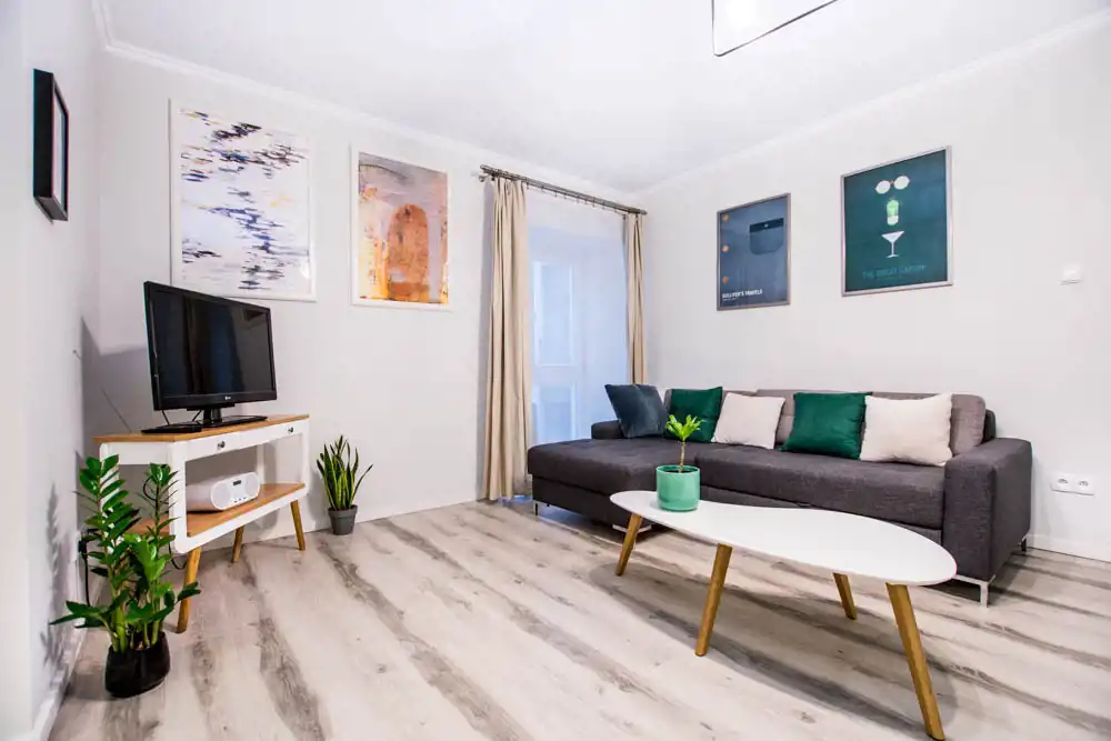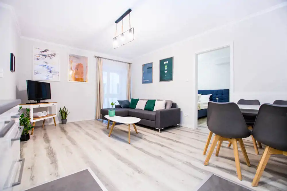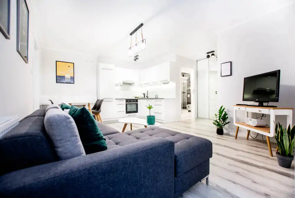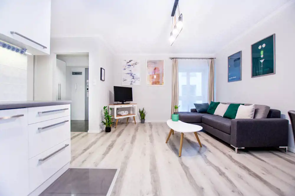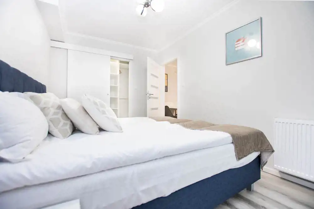 Nieruchomość zlokalizowana w nowoczesnej oficynie z windą, co zapewnia cisze i komfort użytkowania. Kompletnie wyposażony aneks kuchenny (płyta grzewcza, piekarnik, lodówka z zamrażarką, zmywarka). W salonie kącik telewizyjny z rozkładaną sofą oraz stół jadalniany dla 4 osób. Łazienka z prysznicem i pralką. Przestronna sypialnia pozwala na zaaranżowanie miejsca do pracy w domu. Garderoba w sypialni oraz pojemna szafa w zabudowie w salonie zapewniają dużo miejsca na przechowywanie.