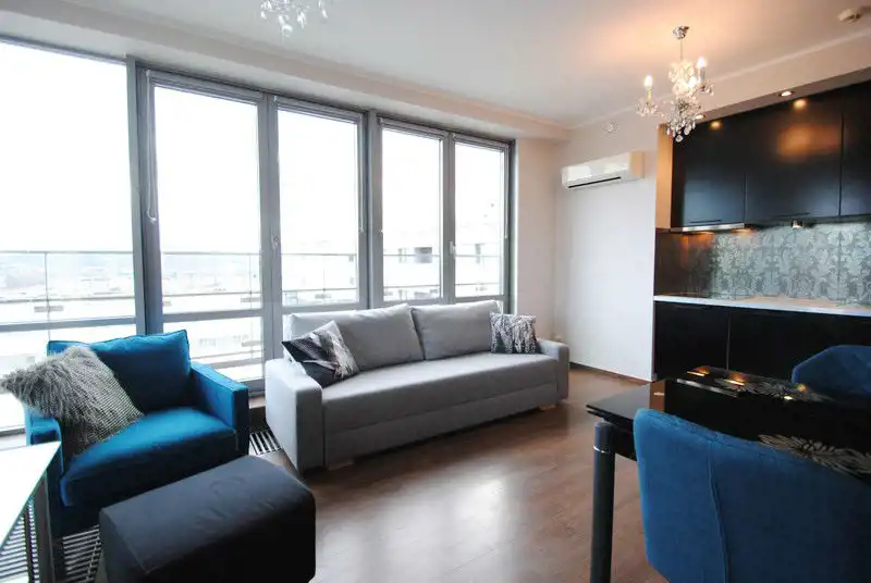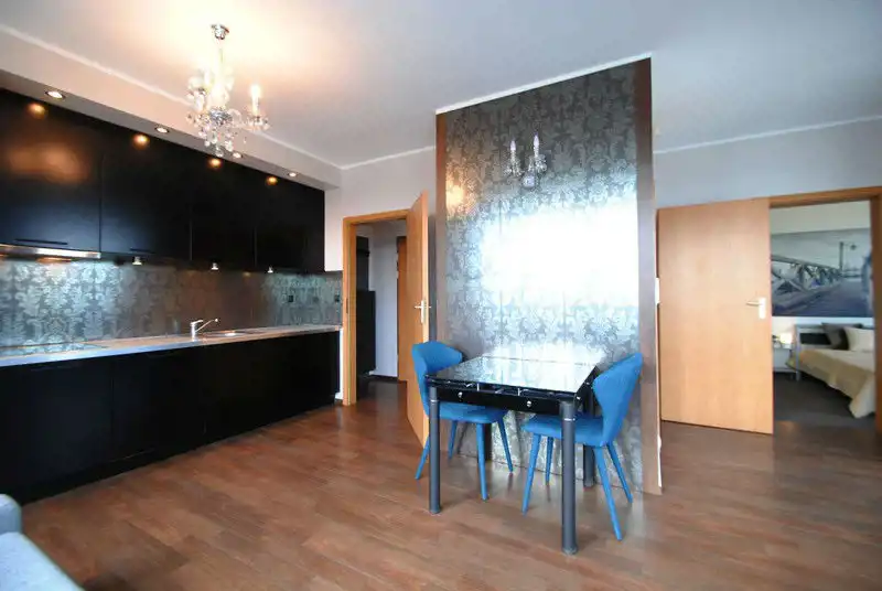 Mieszkanie o powierzchni 45 m2 znajduje się na 10- ostatnim piętrze inwestycji Salwator City przy ulicy Stańczyka. Mieszkanie wykończone i wyposażone w wysokim standardzie z dbałością o każdy szczegół by dać komfort mieszkańcom. Kuchnia wyposażona w pełni sprzęt AGD( lodówka z zamrażalnikiem, płyta grzewcza, piekarnik, zmywarka). Salon z sofą fotele, stolikiem kawowym i stołem jadalnianym. Sypialnia z podwójnym łóżkiem i z zabudowaną szafą. W łazience wanna oraz szafa z pralką. W przedpokoju zabudowane szafy. Ogromnym atutem jest narożny taras na który wychodzi się z salonu. Mieszkanie jest na ostatnim piętrze a wkoło są niższe budynki co powoduje że nic nie zasłania widoku na panoramę miasta ( nawet Wawel ). Dodatkowo komórka lokatorska.