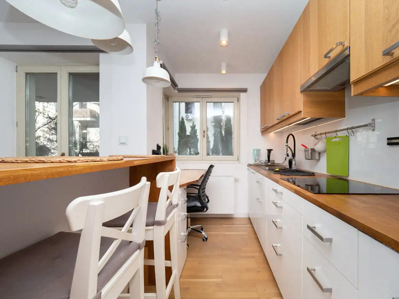 The apartment is equipped with high-quality household appliances. The apartment includes a private garden with an area of approx. 35m2.