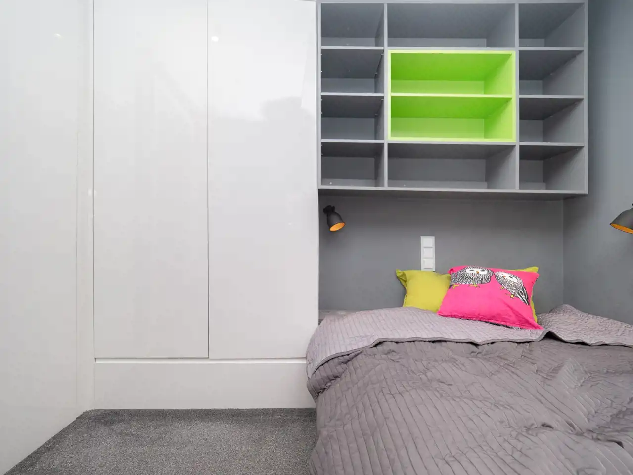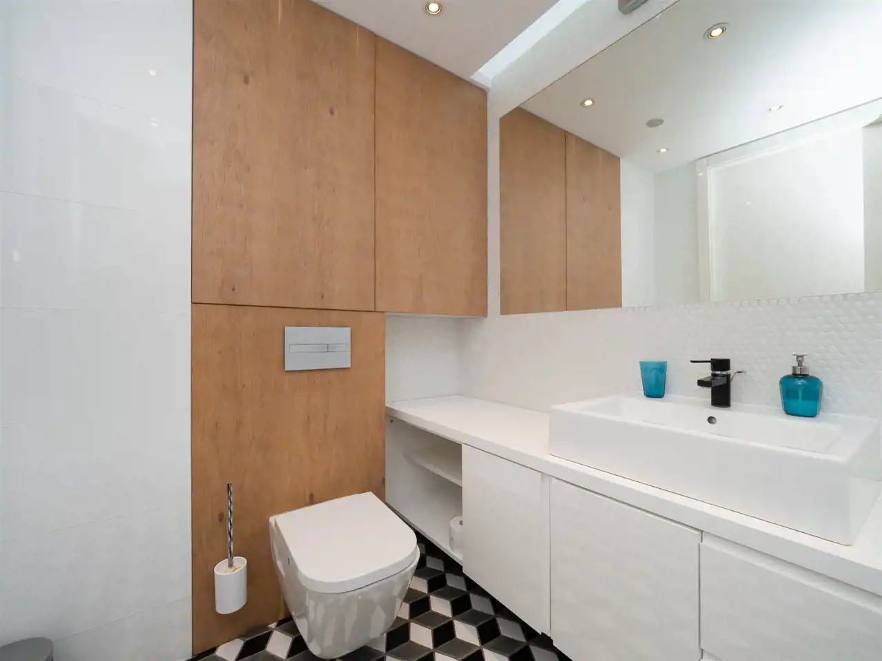 The apartment is located at Zamoyskiego Street in Stare Podgórze, right next to Rondo Matecznego. The area is well connected with the whole of Krakow. Full infrastructure in the area. To the nearest shopping center 4 minutes by bus. Even though the apartment is located in the center of Krakow, its layout ensures complete peace and quiet in the garden.