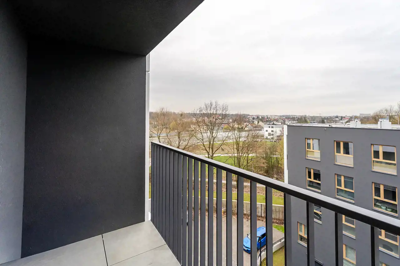 Z sypialni oraz salonu jesteśmy w stanie przedostać się na balkon o wielkości ok. 3,5m2.