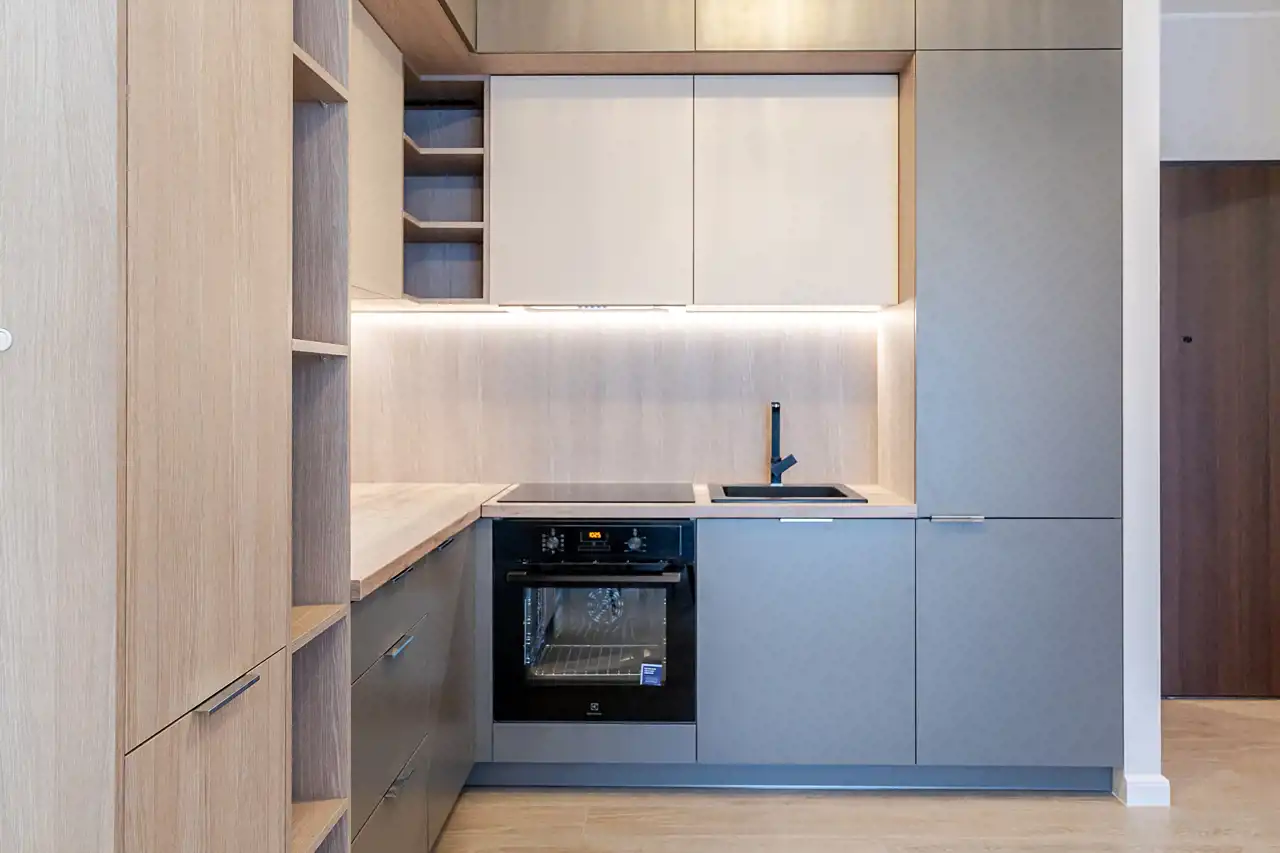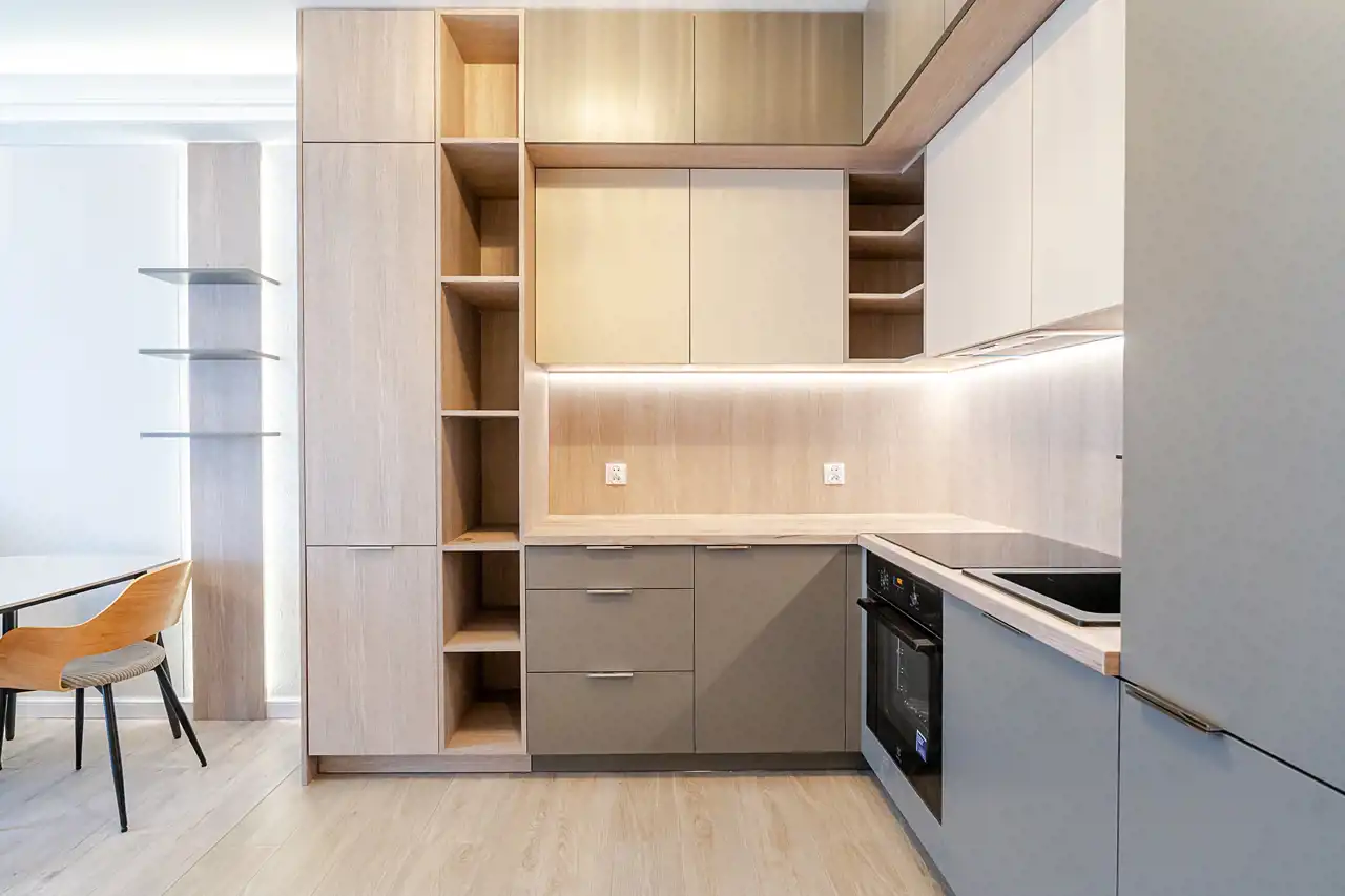 Przestrzennego aneksu kuchennego z salonem