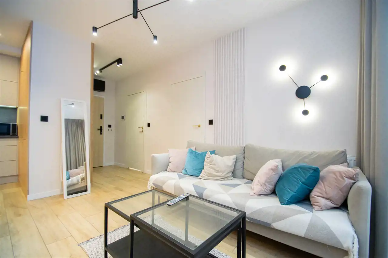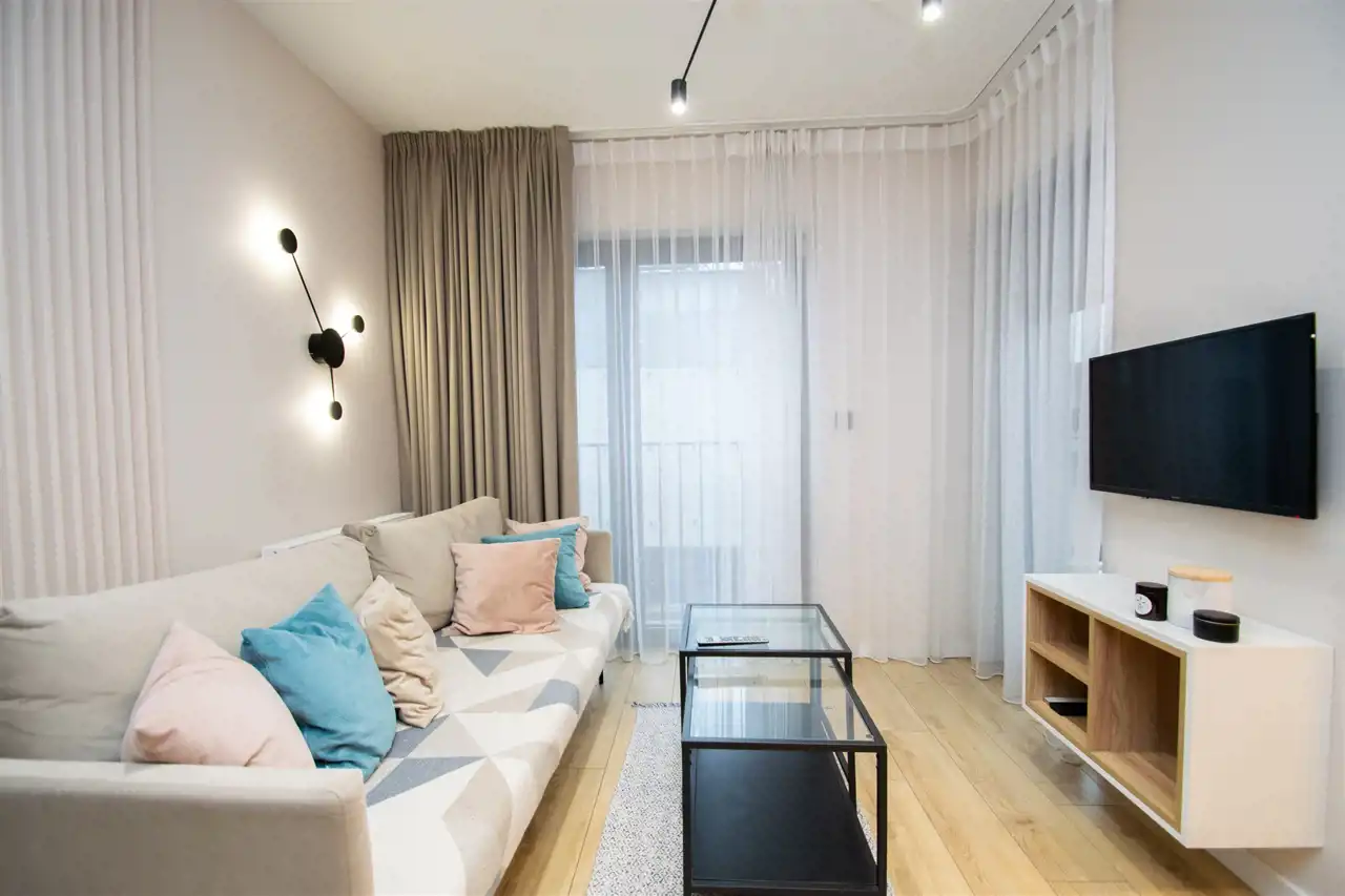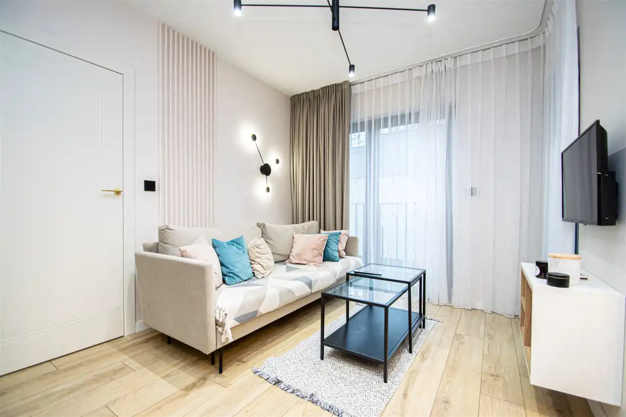 Do wynajęcia nowoczesne, komfortowe mieszkanie położone w Krakowie przy ul. Wybickiego 44A. Nieruchomość znajduje się na 1. piętrze w budynku z windą.