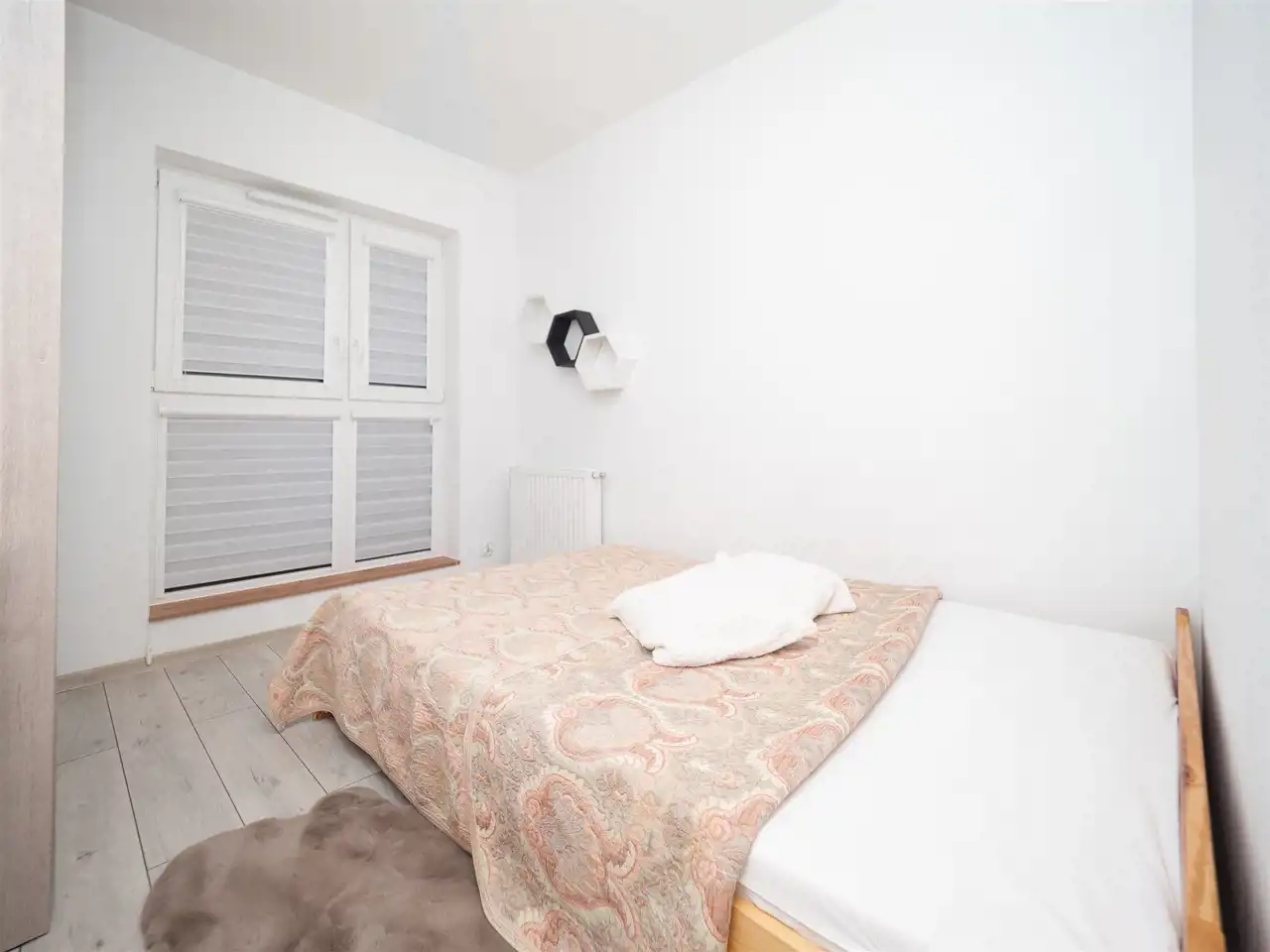 Located on the ground floor, the apartment is fully furnished and equipped, finished to a good standard, and ready to move in. An assigned outdoor parking space is available under the building for 150 PLN/month.