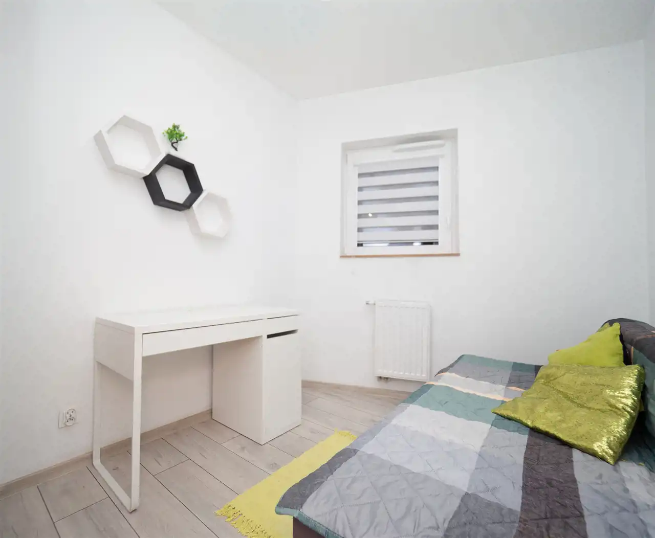 The apartment is situated in a quiet and green neighborhood on A. Vatulaniego Street, offering peace and comfort while remaining well-connected with the city center. Bus stops nearby ensure convenient access to all parts of Krakow. In the area, you’ll find local shops, services, and plenty of green spaces for recreation and relaxation.
