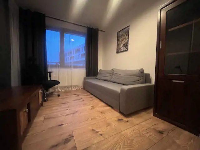Na wynajem 2 pokojowe mieszkanie o powierzchni 45 m2, składajace się z przedpokoju z szafą, dużej łazienki z prysznicem oraz pralką, dwóch osobnych pokoi oraz oddzielnej kuchni. Z jednego pokoju oraz kuchni wyjscie na loggie. Kuchnia w pelni wyposażona i umeblowana - bardzo duża ilosc miejsca do składowania, pełna zabudowa, sprzęt AGD - chłodziarko zamrażarka, piekarnik, płyta ceramiczka, zmywarka, ekspres do kawy. W każdym pokoju pojemna szafa, dodatkowo w jednym pokoju łożko a w drugim rozkładana sofa. Ogrzewanie miejskie, ekspozycja zachodnia, w pełni umeblowane.