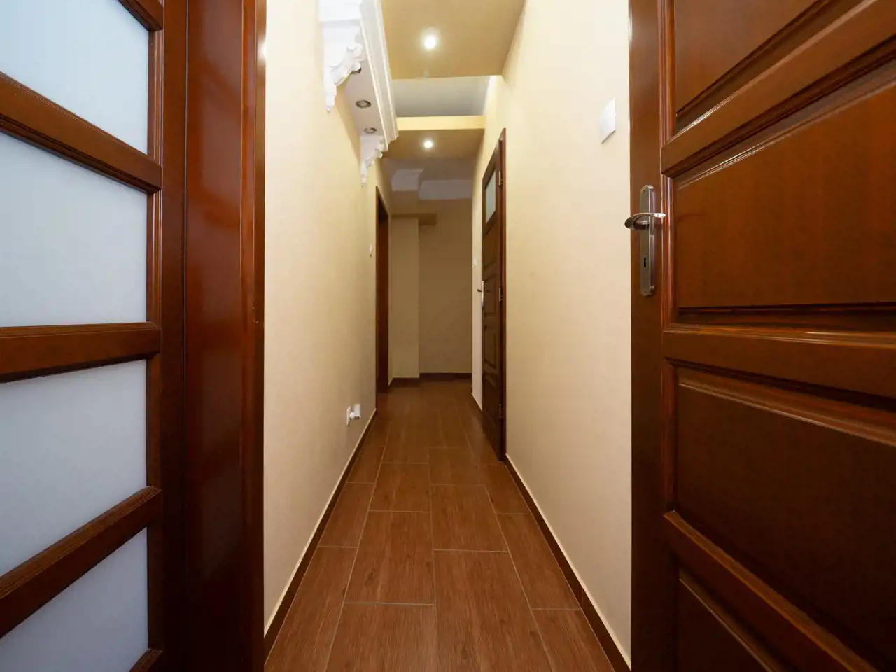 Na podłogach w pokojach znajduje się parkiet dębowy, drzwi wykonane były na zamówienie.