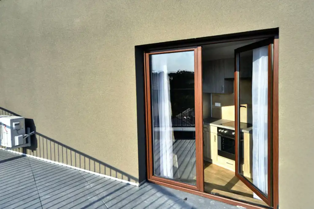 W nowym budynku znajduje się się świetne 3 pokojowe mieszkanie - 3 pokoje, osobna kuchnia z wyjściem na duży, 15 metrowy taras. Do tego 2 łazienki - jedna z wanną i WC, druga - z WC i umywalką. W mieszkaniu zainstalowany klimatyzator.