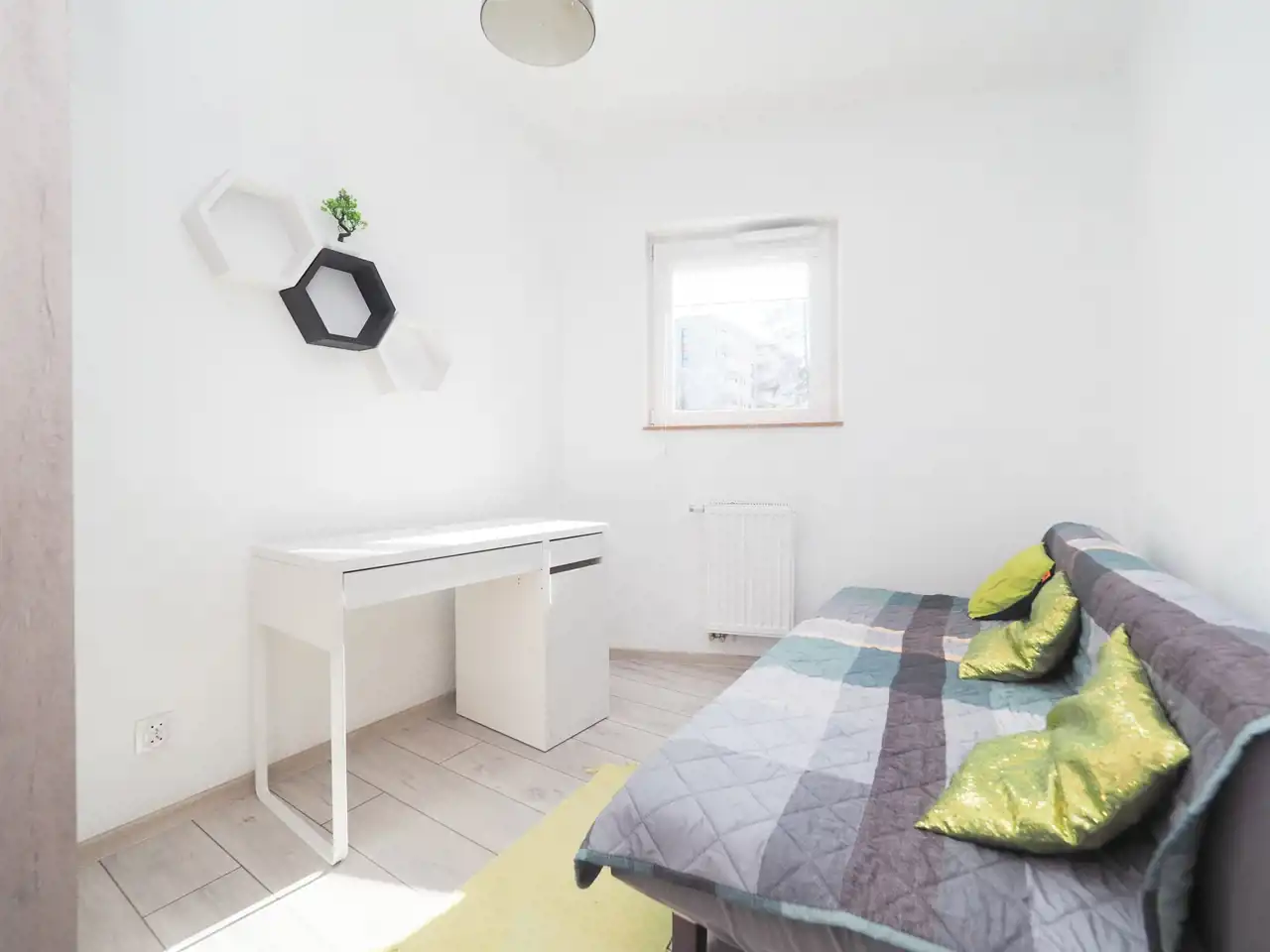 The apartment is situated in a quiet and green neighborhood on A. Vatulaniego Street, offering peace and comfort while remaining well-connected with the city center. Bus stops nearby ensure convenient access to all parts of Krakow. In the area, you’ll find local shops, services, and plenty of green spaces for recreation and relaxation.