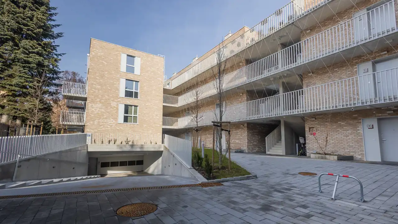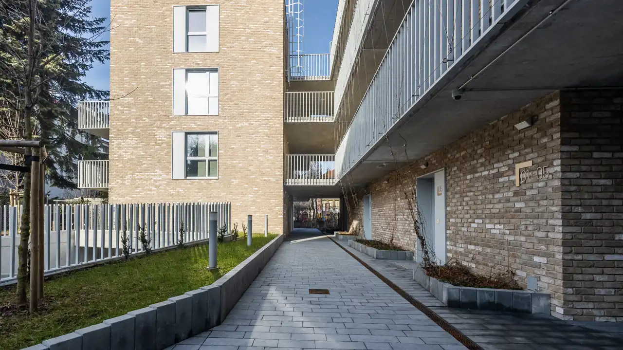 Kameralna zabudowa, nieprzekraczająca trzech pięter o ciekawej i nowoczesnej architekturze. Do mieszkań prowadzą wejścia z galerii komunikacyjnej porośniętej pnączami, tworzącej tzw. ogród wertykalny.