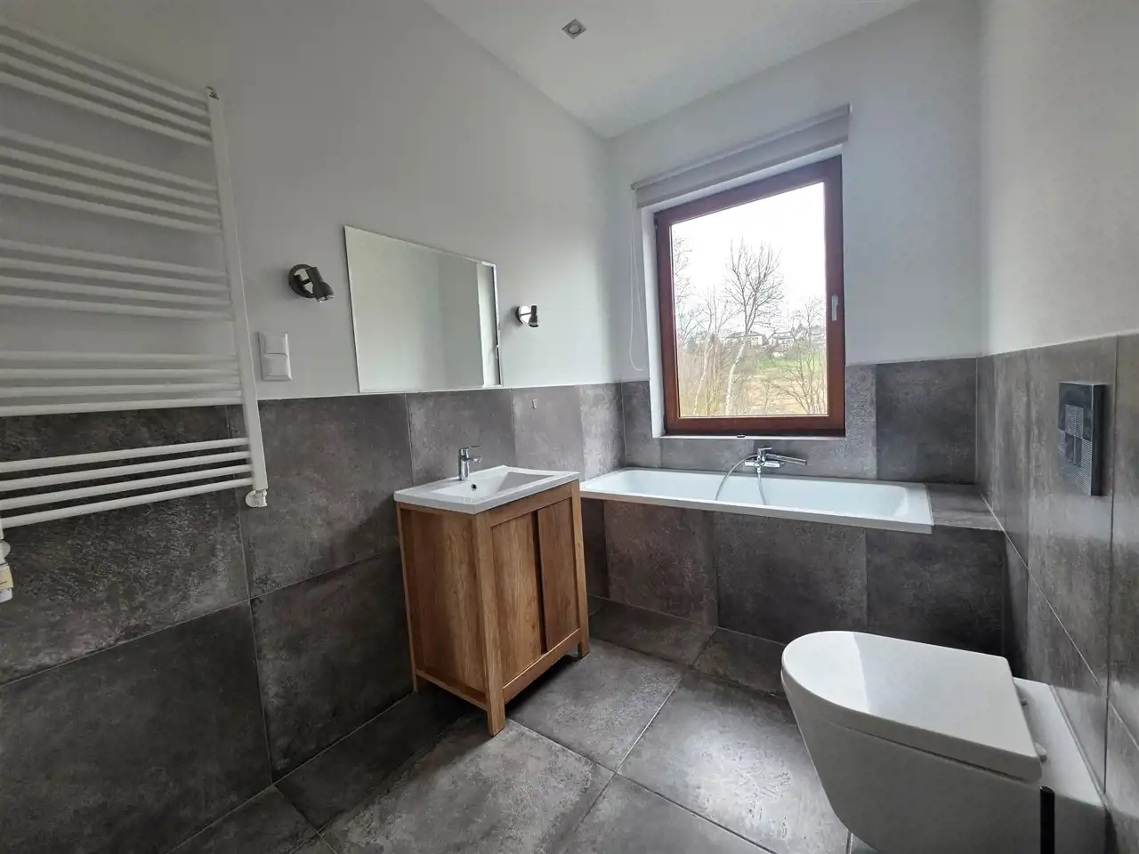 - dużego tarasu z widokiem na zieleń
