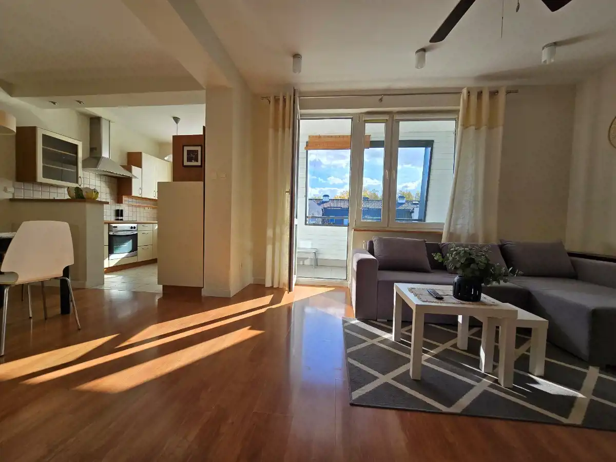 Do wynajęcia przestronne mieszkanie o powierzchni ok. 70 m², położone na 1. piętrze w kameralnym, 2-piętrowym budynku. Lokal składa się z dużego salonu z otwartą kuchnią, dwóch sypialni, łazienki oraz garderoby. Mieszkanie jest w bardzo dobrym stanie. Loggia przy salonie i balkon sypialni to dodatkowa przestrzeń.