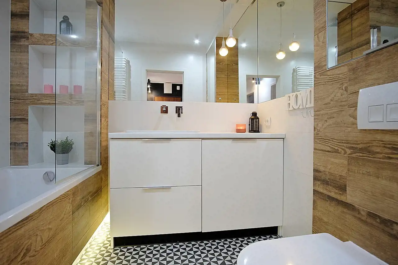 Całość wykończona w wysokim standardzie, ładnie oświetlona, tworzy ciepły klimat.