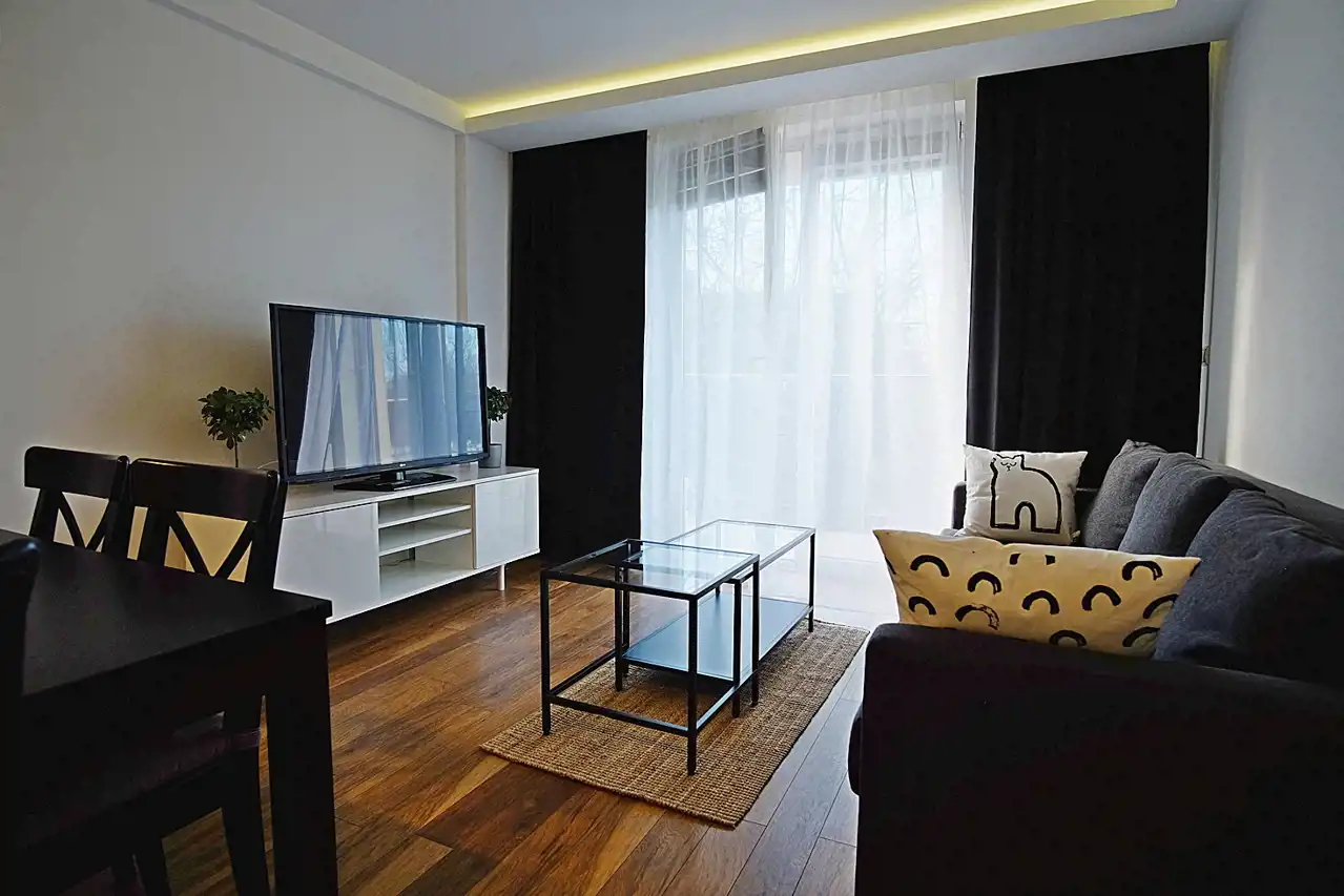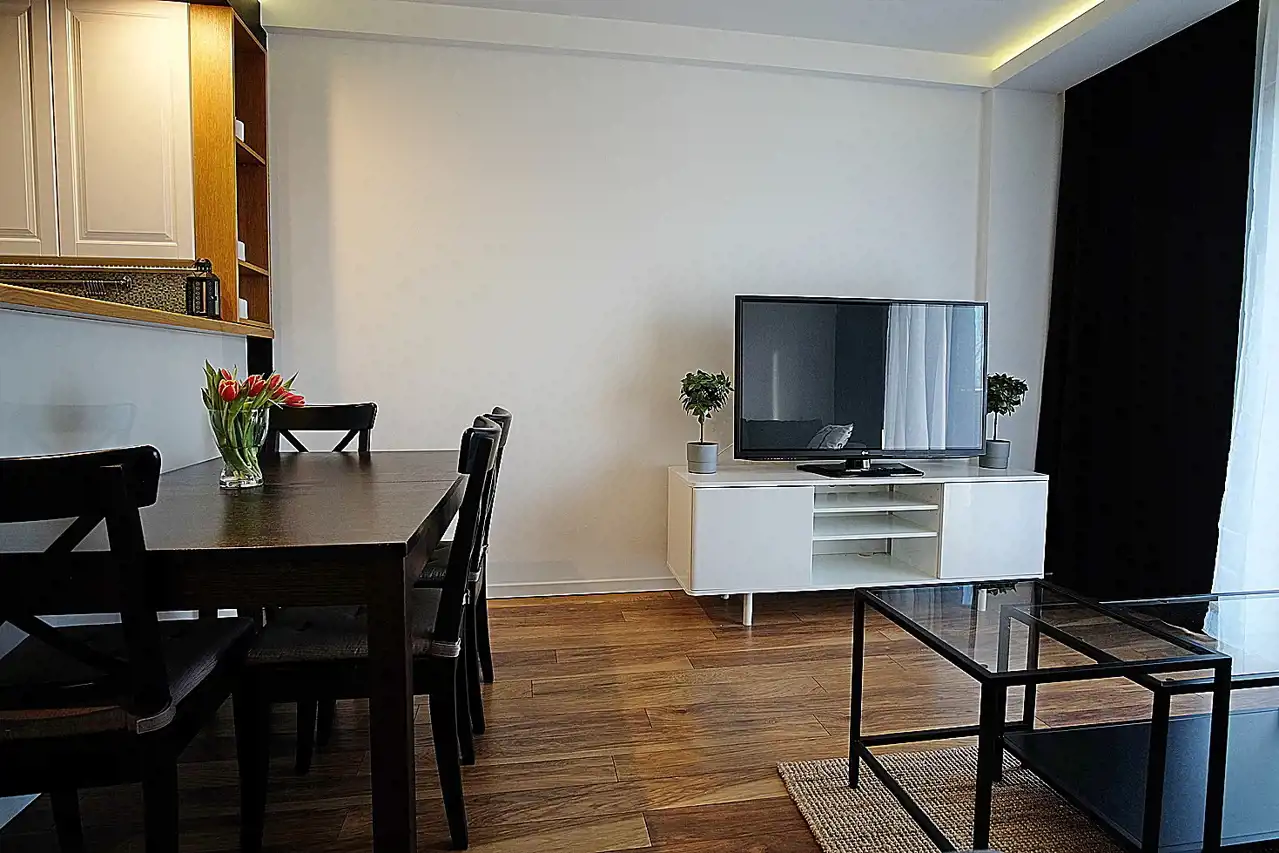 Komfortowo wyposażone, meble na wymiar, pełne AGD (zmywarka 60, piekarnik, okap, płyta, lodówka).