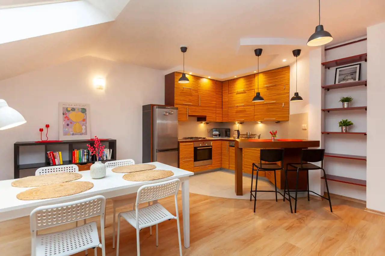 Mieszkanie jest w pełni umeblowane i dobrze doświetlone – duża ilość naturalnego światła zapewnia komfort codziennego użytkowania.