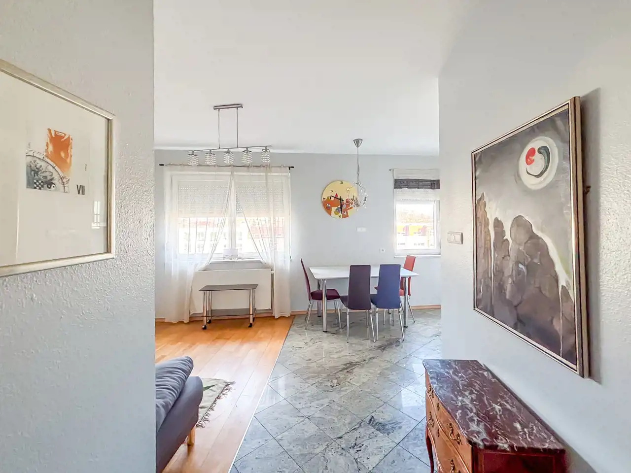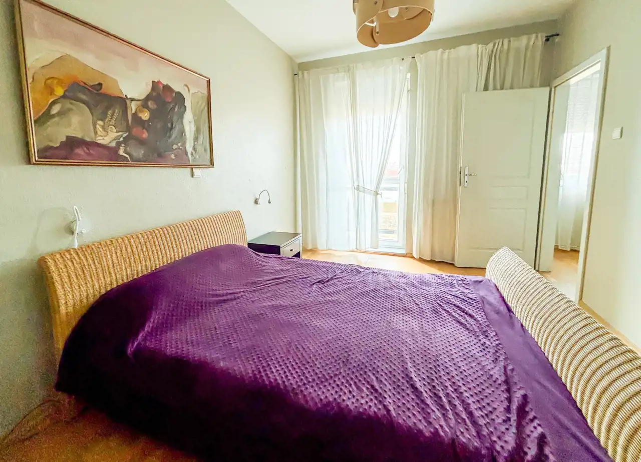 The apartment is located on the 4th floor, offering plenty of natural light and a pleasant open view from both the windows and the small private balcony.