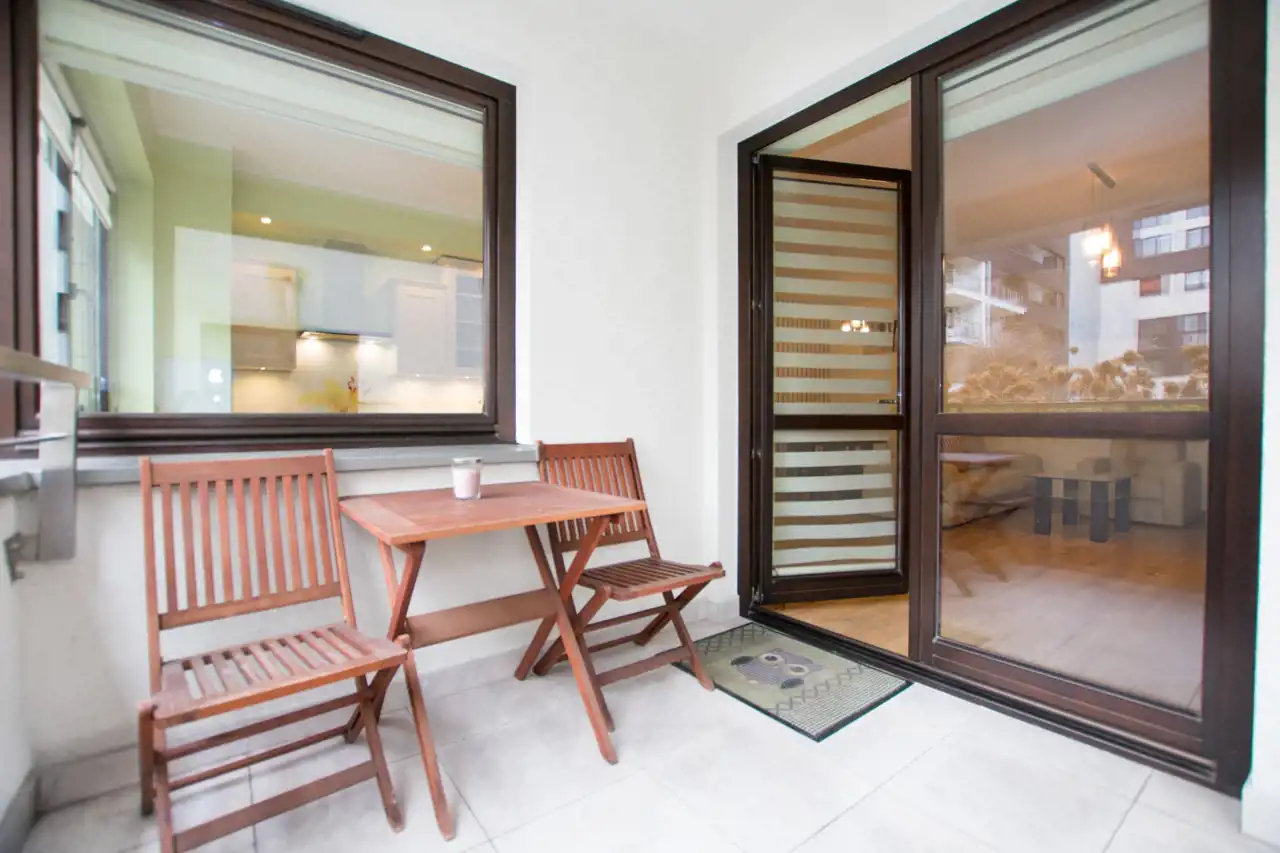 Nieruchomość położona jest w zamkniętej inwestycji z całodobową ochroną i monitoringiem z widokiem na wewnętrzny dziedziniec dzięki czemu jest ciche i przytulne. Mieszkanie jest w pełni umeblowana i wyposażona.