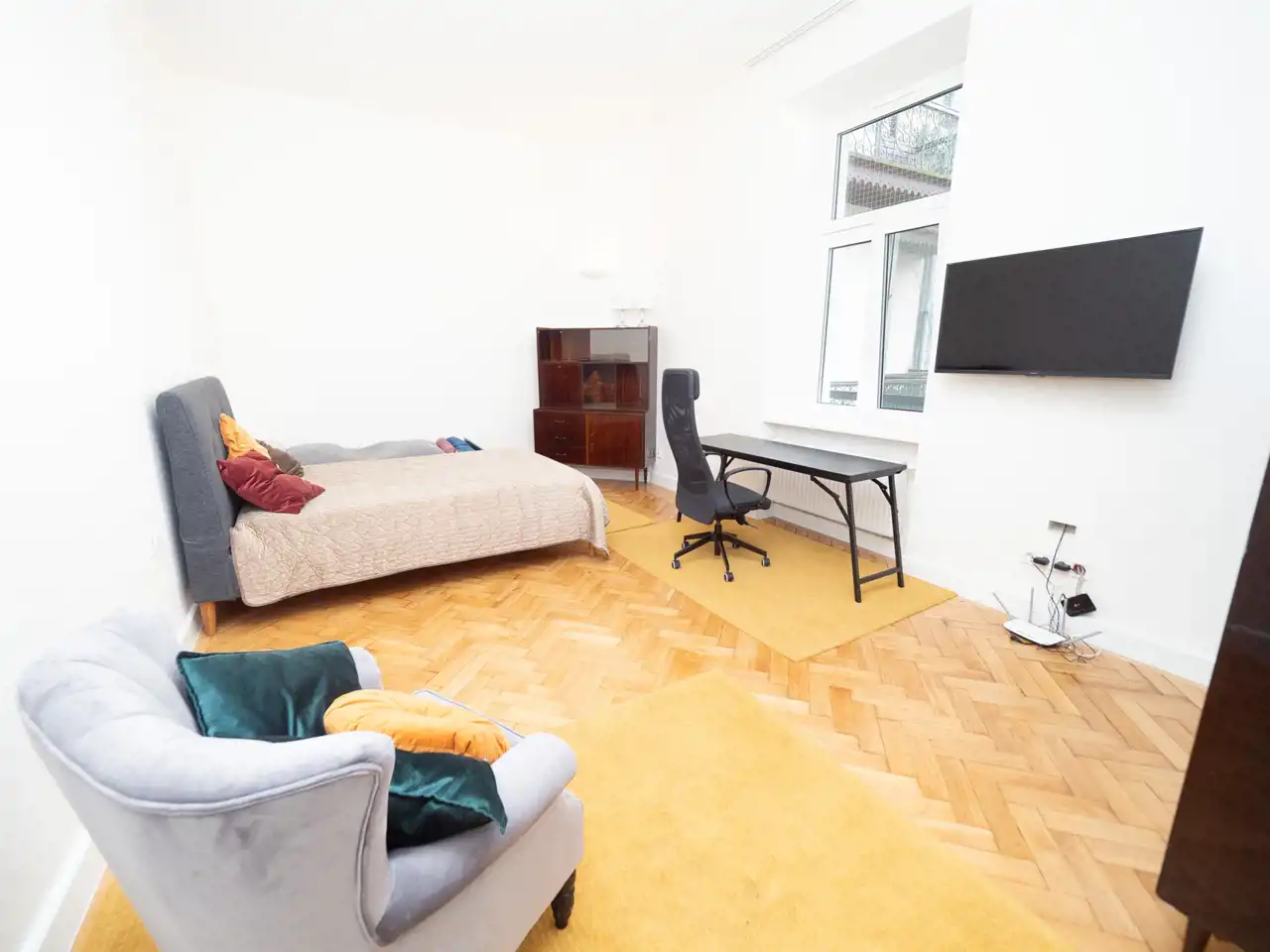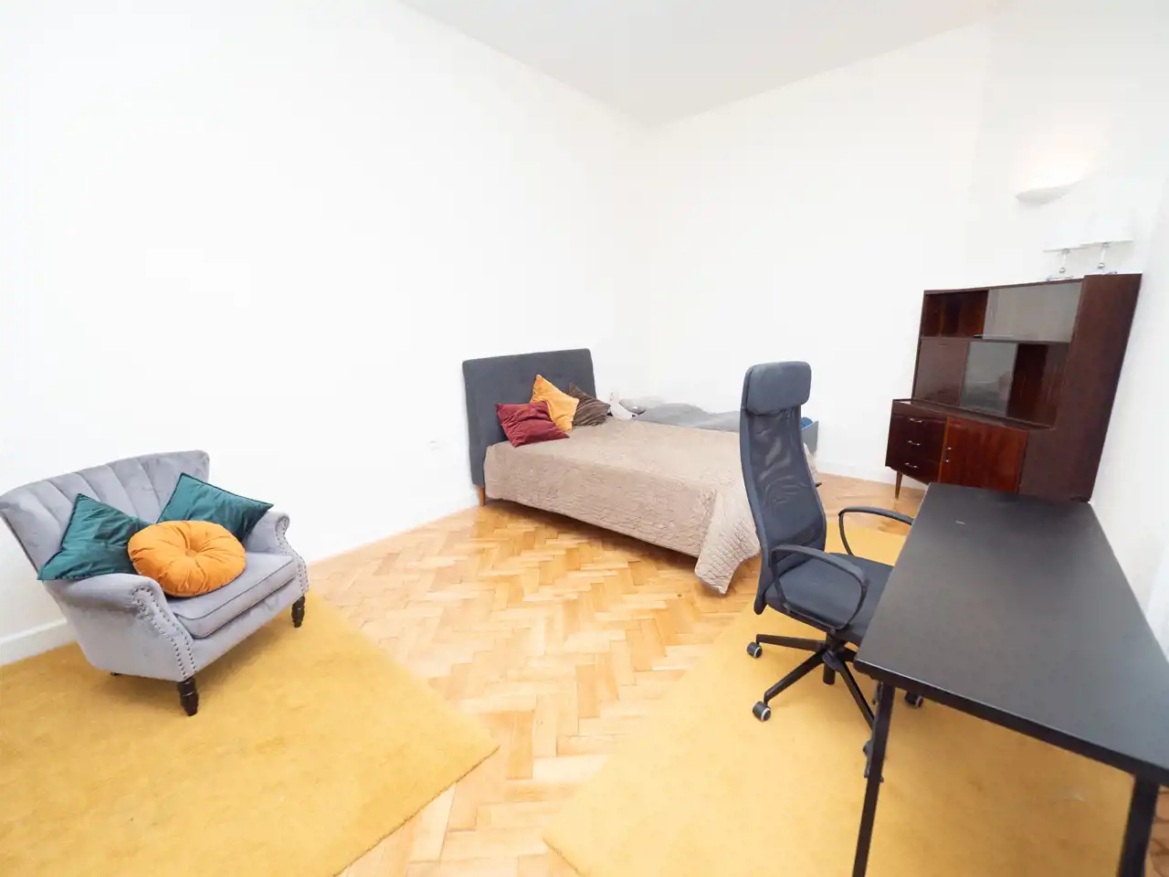 - bedroom (bed, desk, armchair)