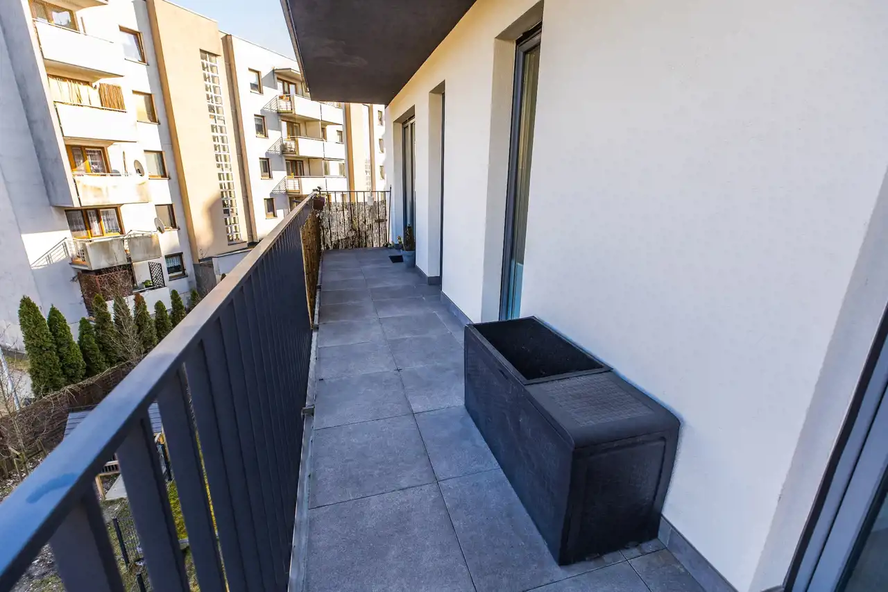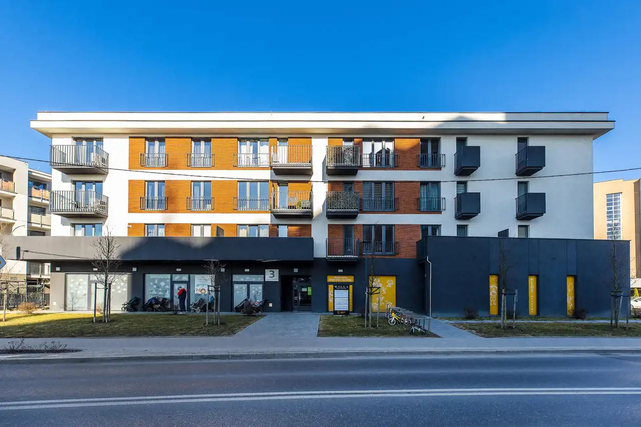 Mieszkanie znajduje się w nowoczesnej inwestycji z 2022 roku. Budynek wyposażony jest w windę, a mieszkańcy mają dostęp do garażu podziemnego.Okolica jest dobrze rozwinięta i pełna infrastruktury usługowej – w pobliżu znajdują się liczne sklepy, punkty usługowe, restauracje oraz tereny zielone, w tym park idealny do spacerów i rekreacji.