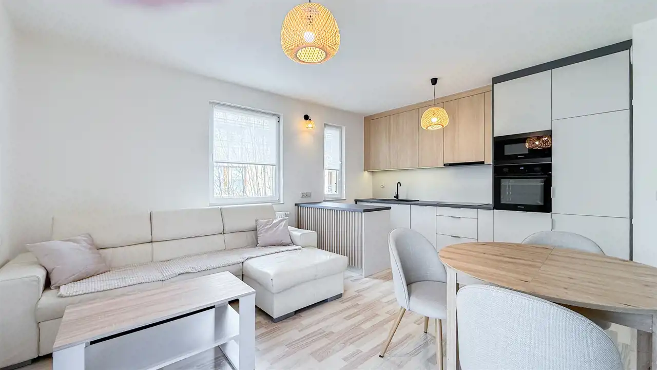Mieszkanie w części umeblowane ( salon z aneksem kuchennym, sypialnia, łazienka) pozostałe umeblowanie do uzgodnienia ( druga sypialnia).