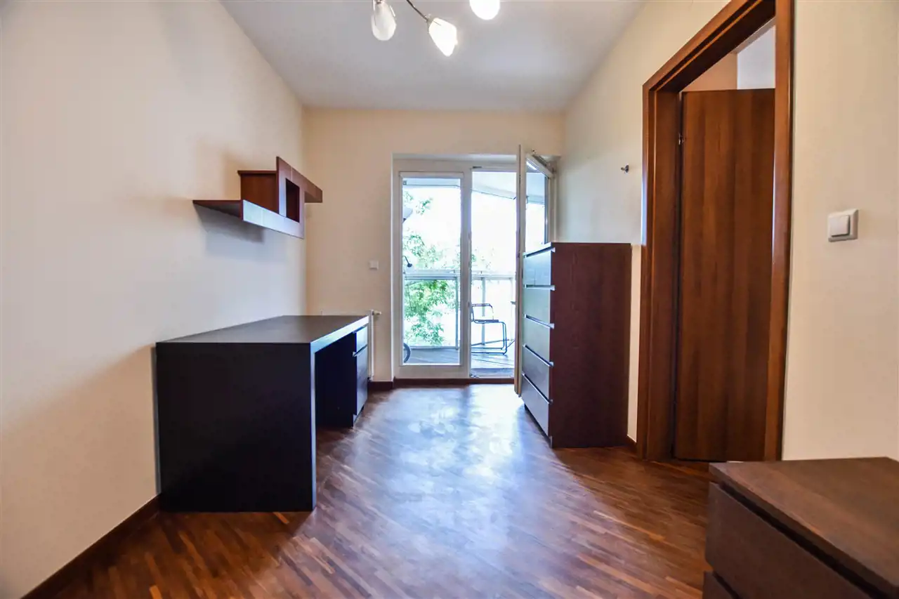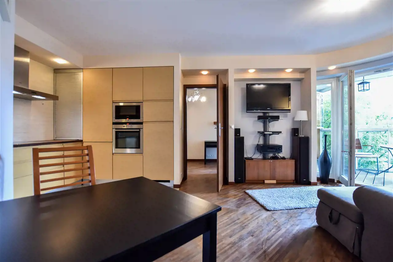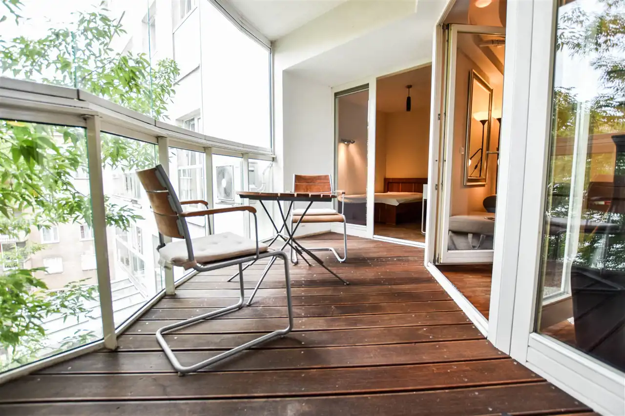 Mieszkanie jest w pełni wyposażone i gotowe do zamieszkania. Posiada spory oszklony balkon z widokiem na dziedziniec i zieleń przez co jest cisze pomimo lokalizacji w ścisłym centrum.