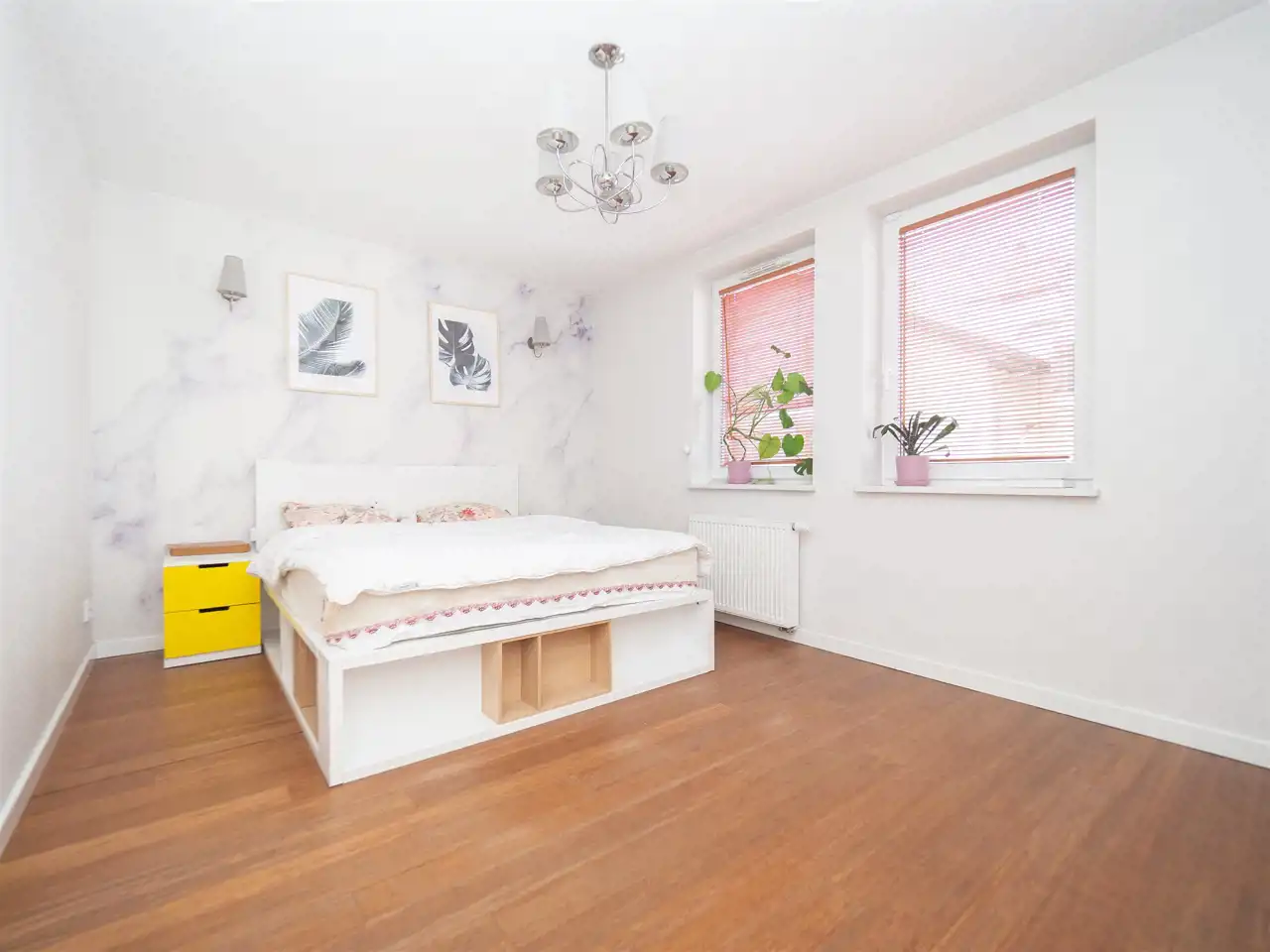 - sypialnia z dużym, wygodnym łóżkiem z pojemnikiem na pościel oraz dużą garderobą,