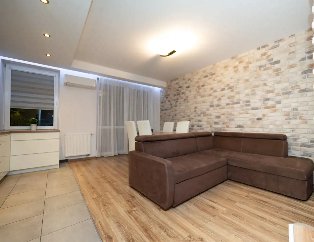 - a spacious living room with a kitchenette – furnished and equipped with a dishwasher, oven, hob, and refrigerator (21.88 m²),