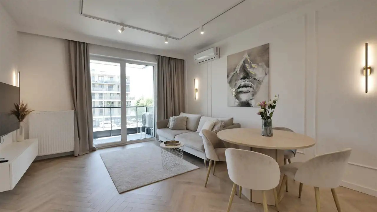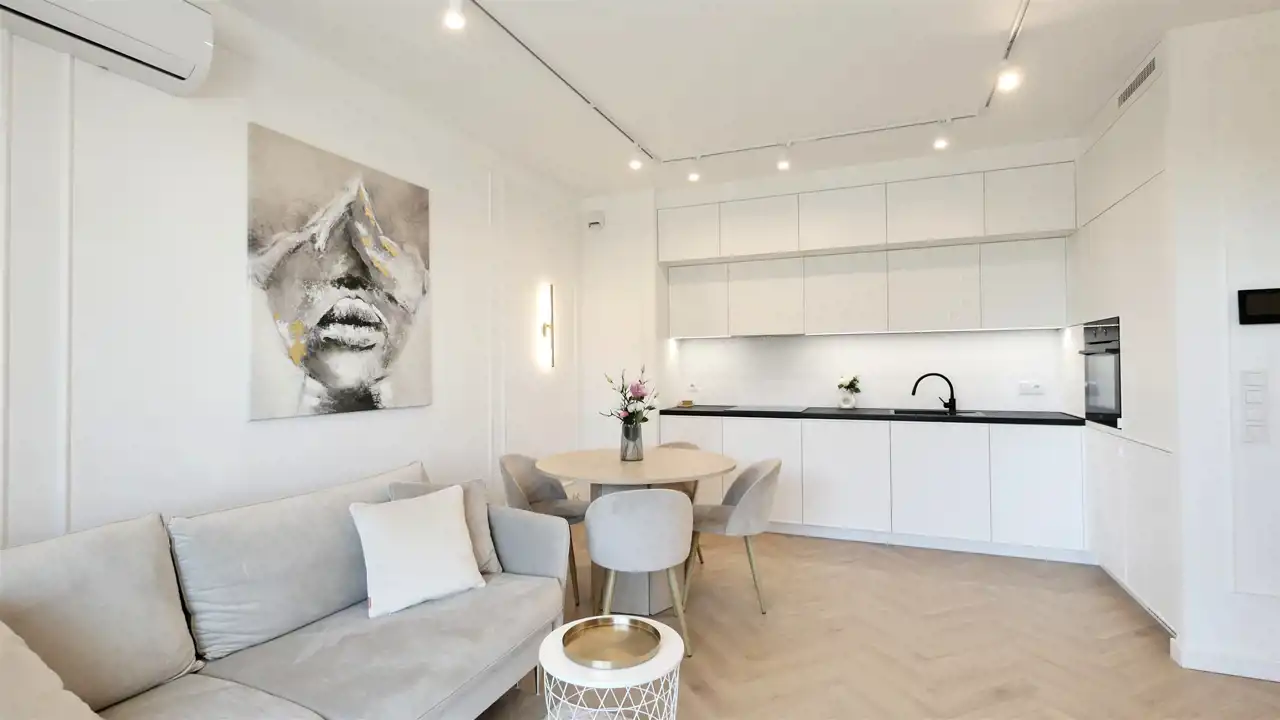 Mieszkanie jest w pełni umeblowane i wyposażone. Zainstalowana jest klimatyzacja.