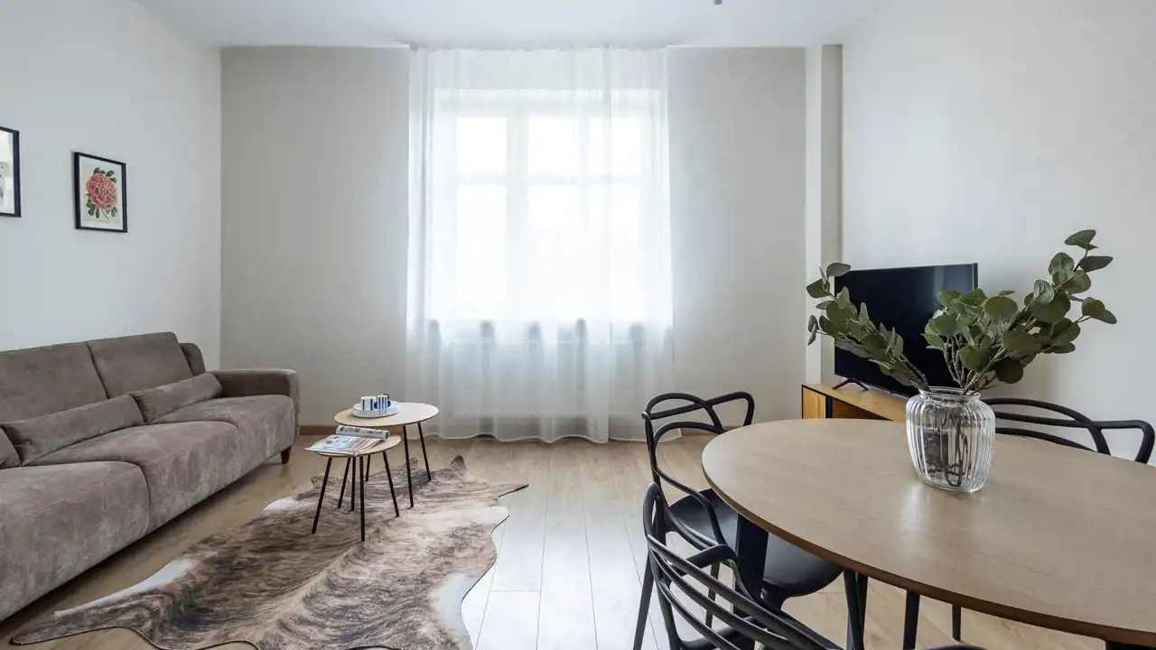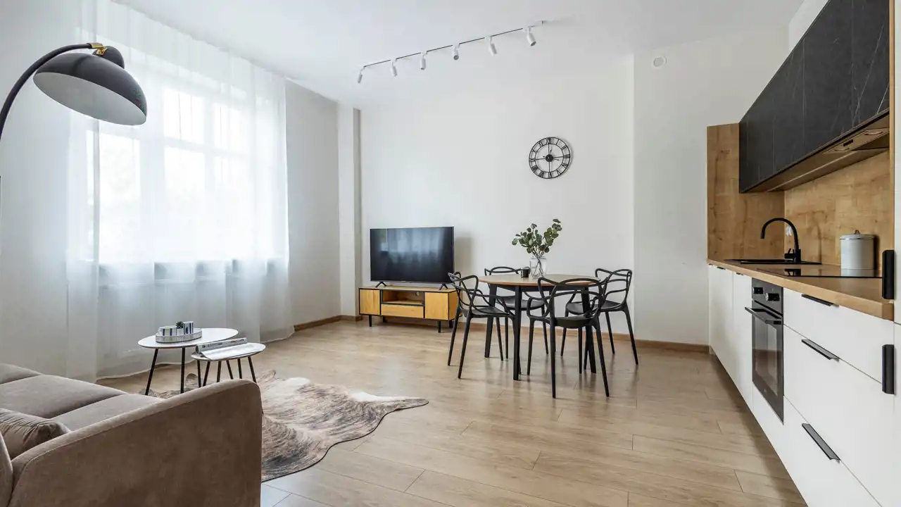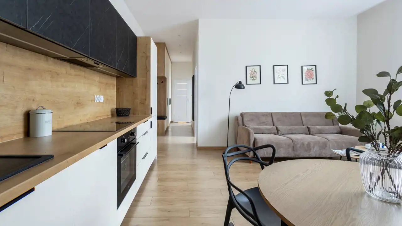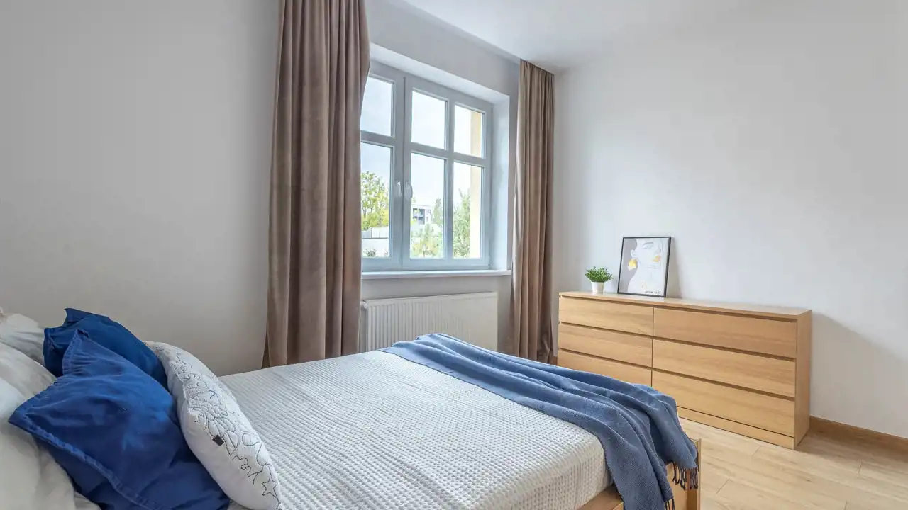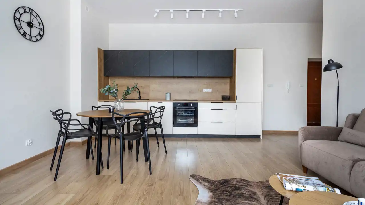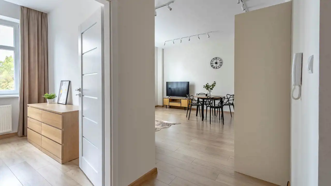 Wygodny salon z komfortową sofą i telewizorem Smart TV, dwie przytulne sypialnie z miękkimi łóżkami oraz funkcjonalna kuchnia z pełnym wyposażeniem AGD – wszystko gotowe, by wprowadzić się od zaraz.