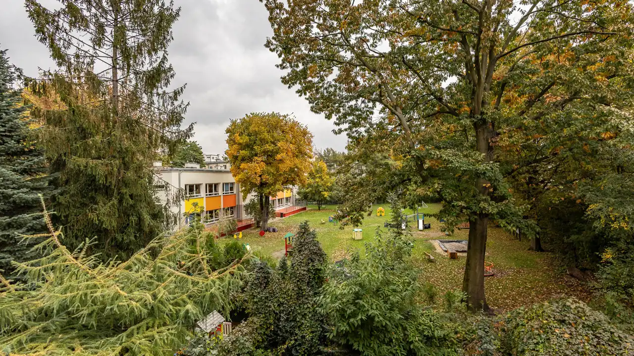 Z okien rozpościera się widok na zieleń, a z tyłu kamienicy znajduje się urokliwy ogród, dostępny wyłącznie dla mieszkańców – idealny na poranną kawę lub wieczorny odpoczynek.
