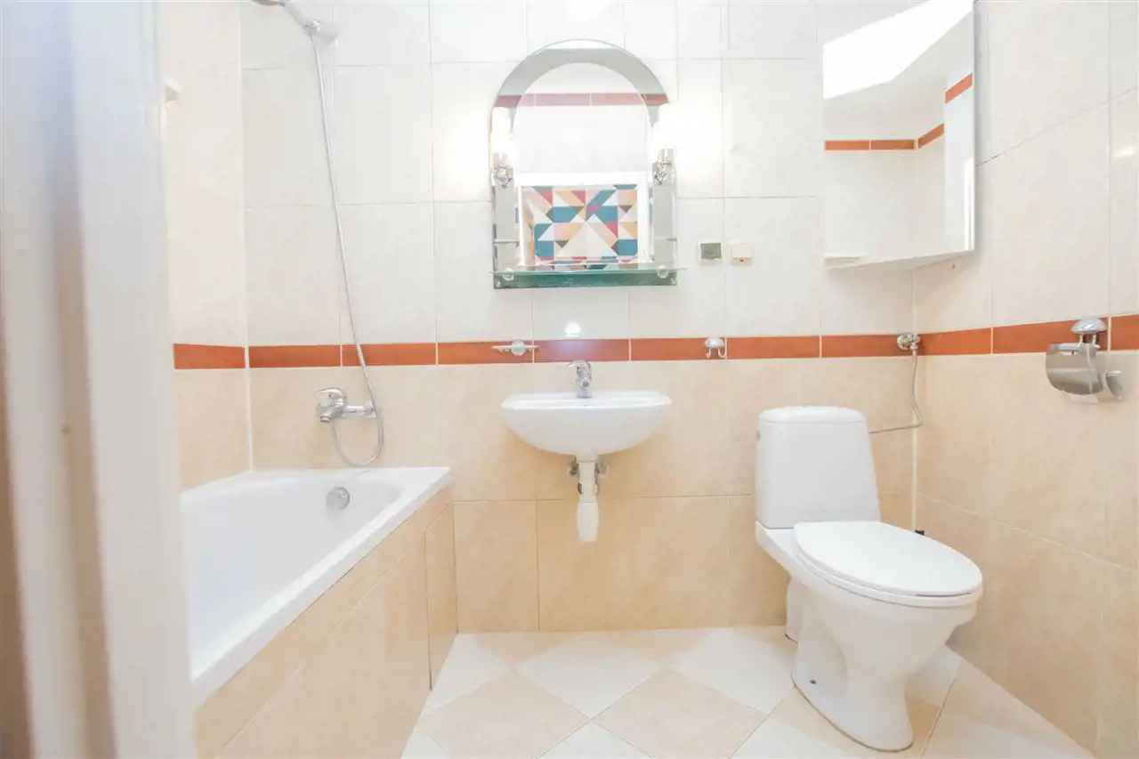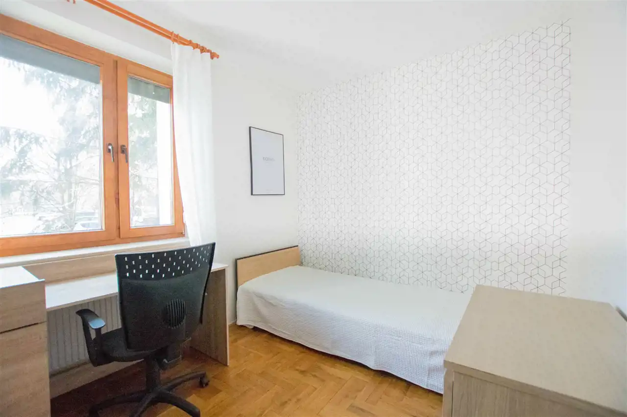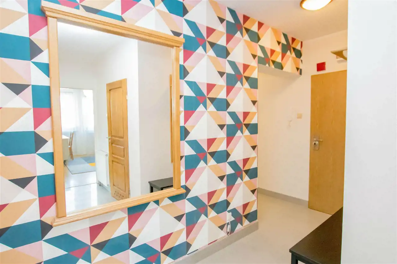 2 Pokoje wyposażone są w łóżka biurka i regały. Jeden z pokoi wyposażony jest w duże podwójne łóżko oraz dużą szafę. Jedna z łazienka wyposażona jest w wannę natomiast w drugiej łazience znajduje sie kabina prysznicowa oraz pralka. W przedpokoju znajduje się duża szafa w zabudowie oraz półki na buty.