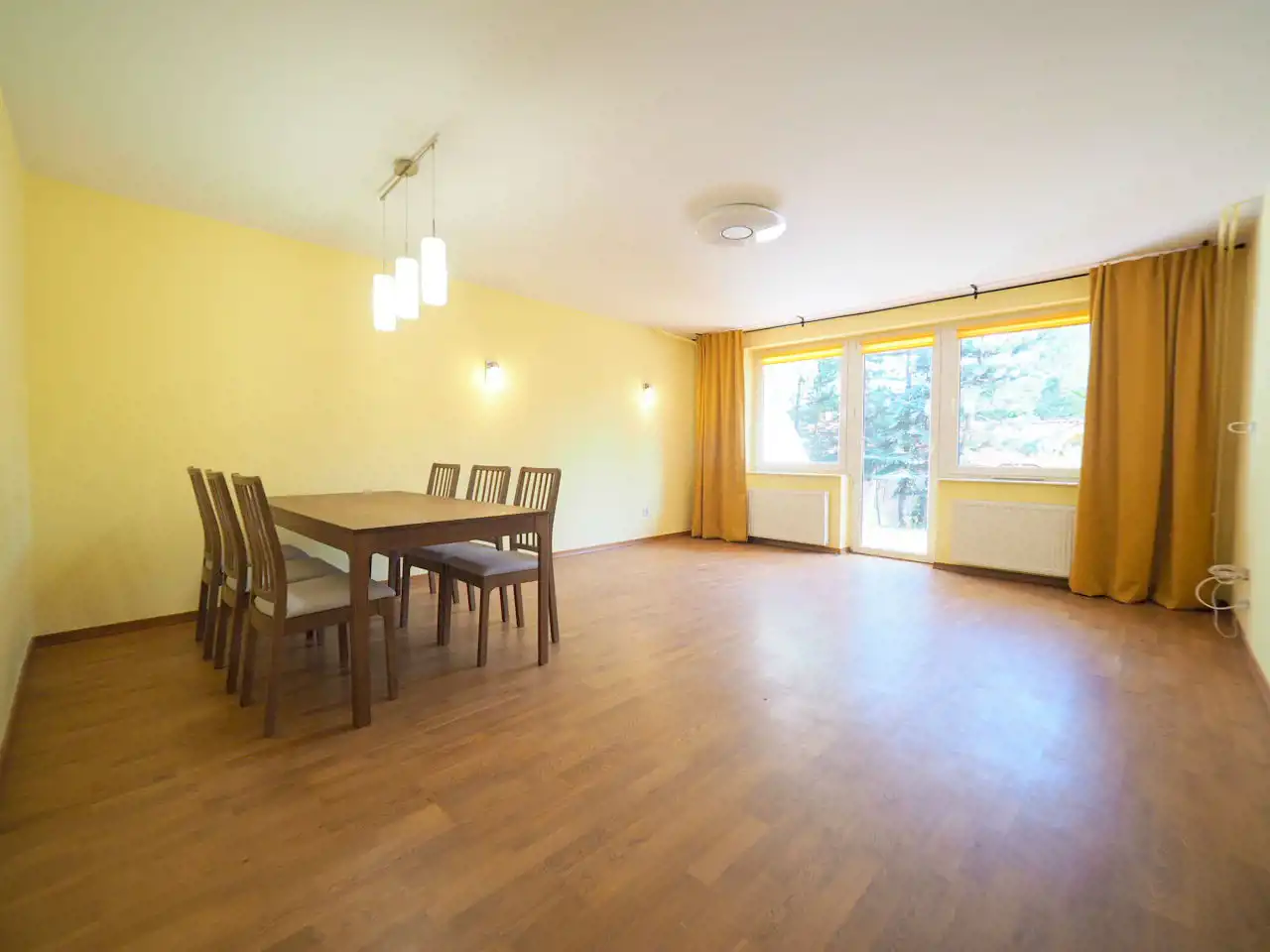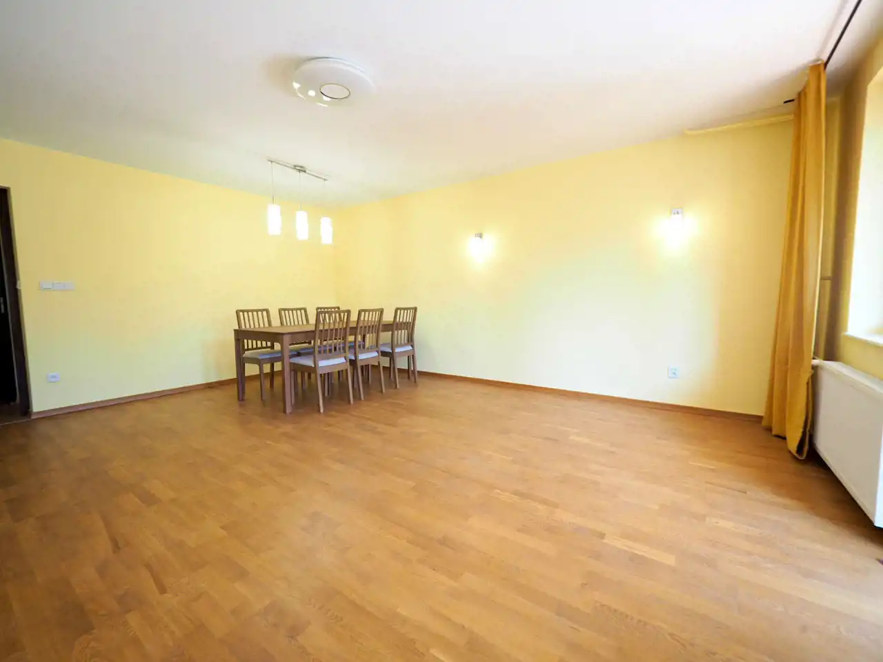 and a terrace and 150 m2 of garden exclusively for the use of residents. District heating, hot water from a boiler (in the future also from the municipal network). North and south exposure, very bright apartment. The apartment includes a large basement of 12 m2 and a utility room under the terrace. Possibility of parking in front of the building (no zone).