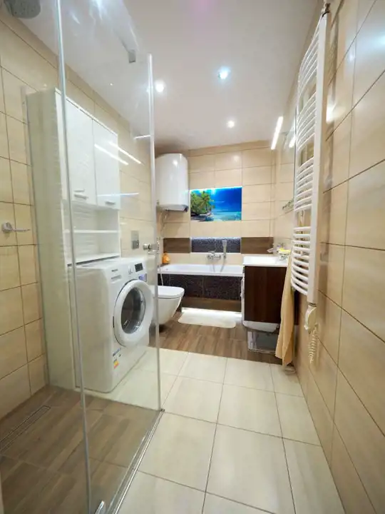 - separate kitchen (built-in furniture, dishwasher, fridge, freezer, induction hob)