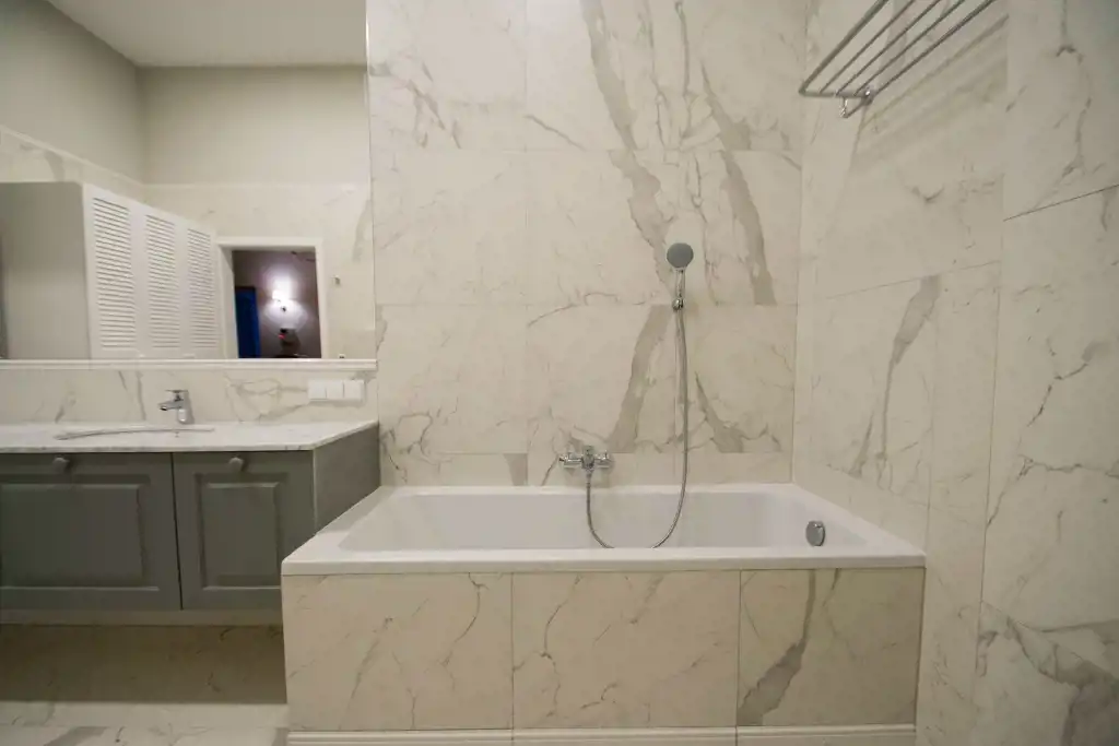 - imponującej łazienki wyposażonej w wannę, prysznic i toaletę,