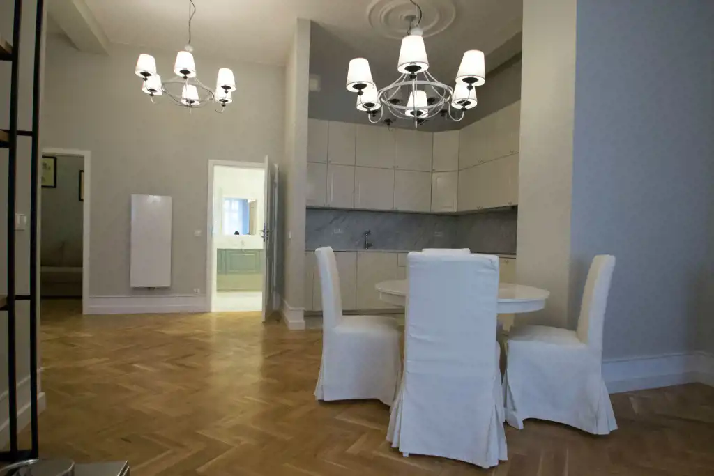 Mamy przyjemność oferować do wynajęcia wyjątkowy apartament o powierzchni 90 m², położony na 1. piętrze luksusowej, odrestaurowanej kamienicy przy kameralnej ulicy nieopodal Galerii Krakowskiej i Opery w dzielnicy Stare Miasto. To propozycja dla osób ceniących ponadczasową elegancję, przestrzeń i prestiżową lokalizację.