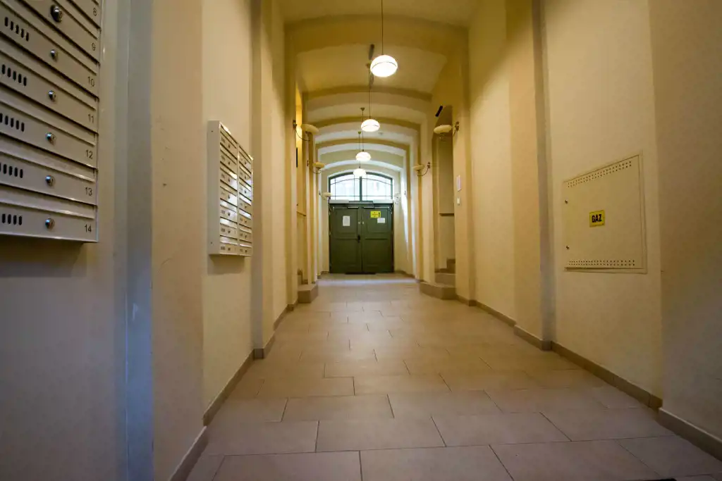 Nieruchomość znajduje się w pięknie odrestaurowanym kompleksie mieszkalnym z windą i garażem podziemnym, w budynku jest również monitoring.