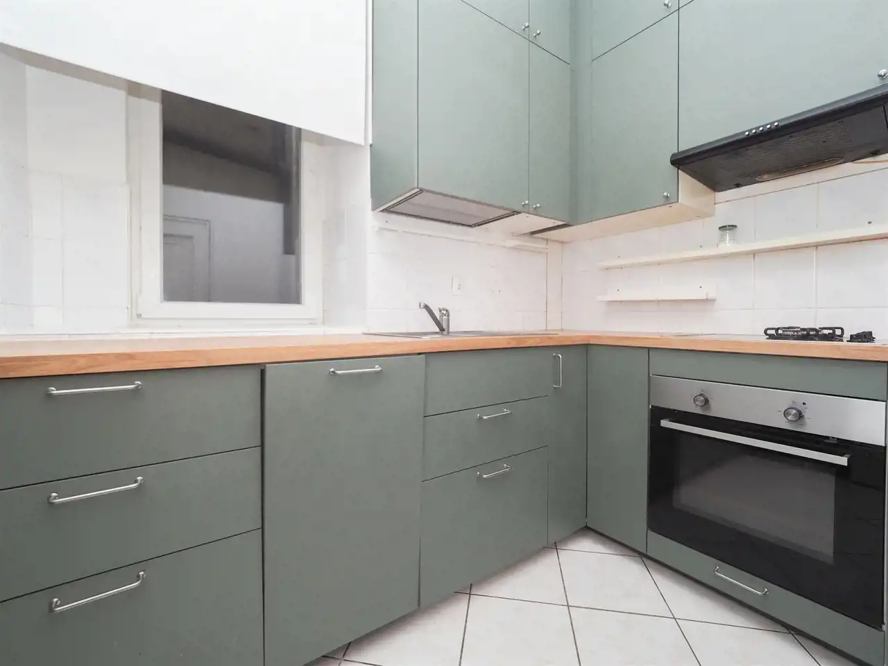- separate kitchen equipped with a refrigerator, dishwasher, oven, and gas hob