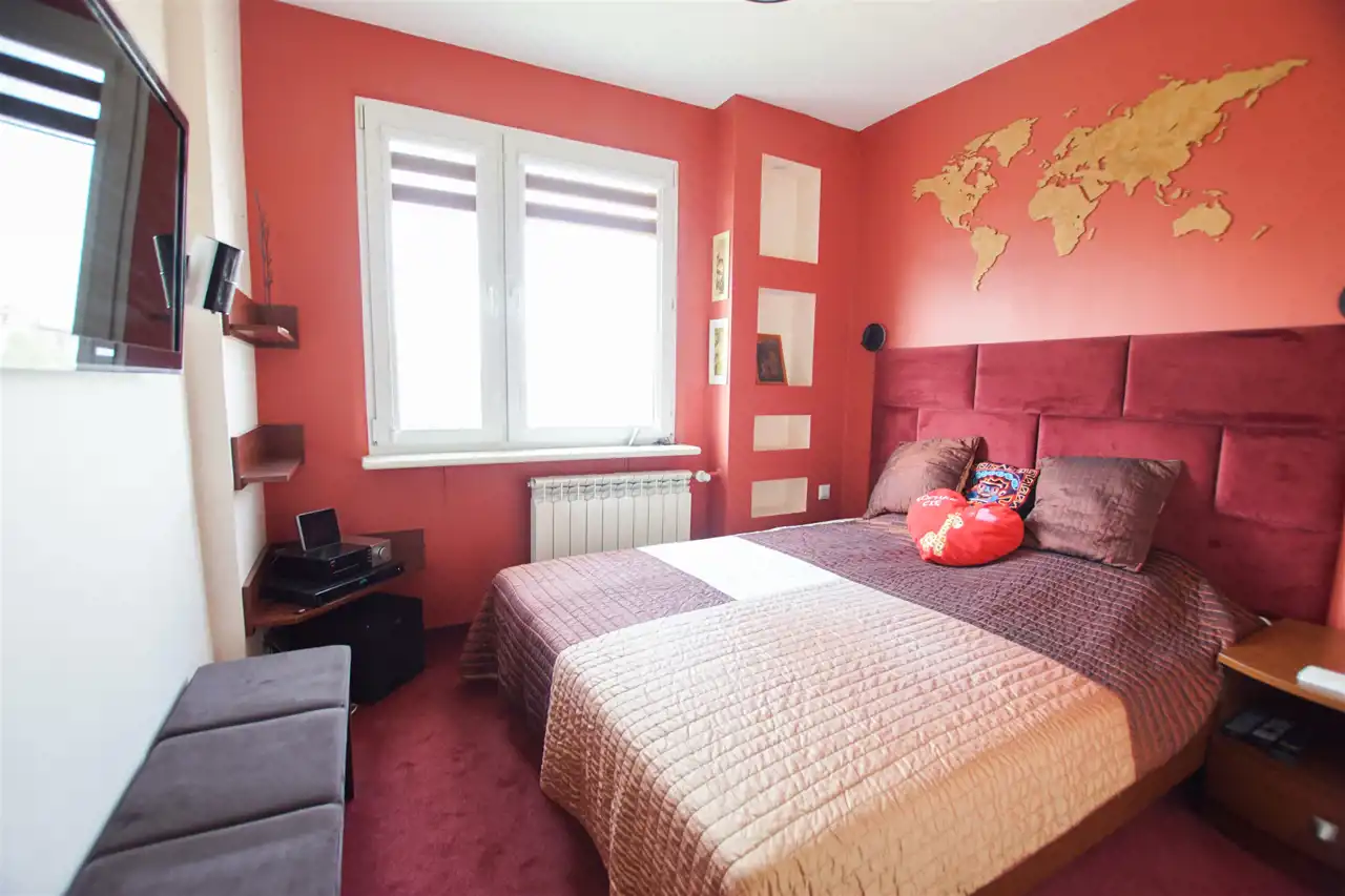 - druga mniejsza SYPAILNIA z podwójnym łóżkiem, telewizorem, sprzetem audio,