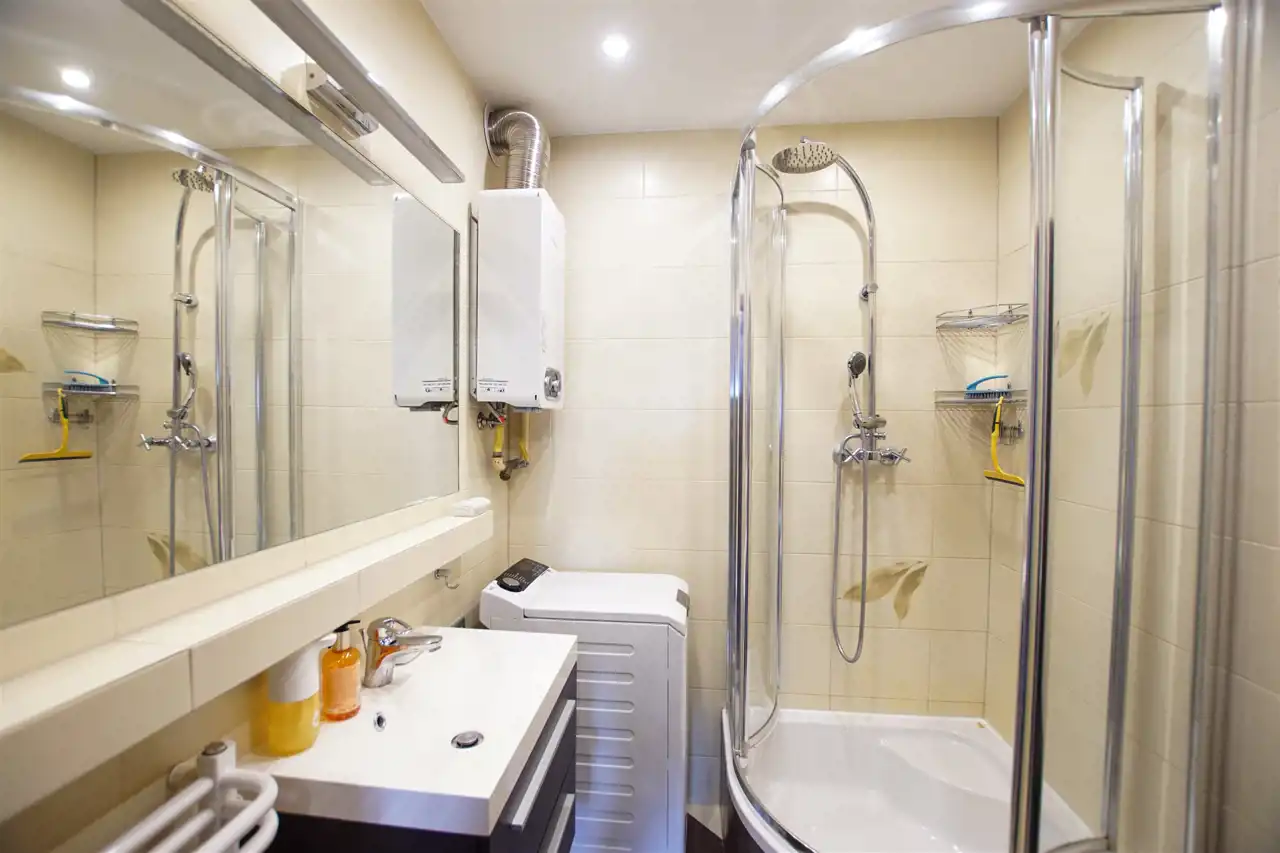 - ŁAZIENKA ładnie wyflizowana, z wanną, umywalką, wc oraz pralką,