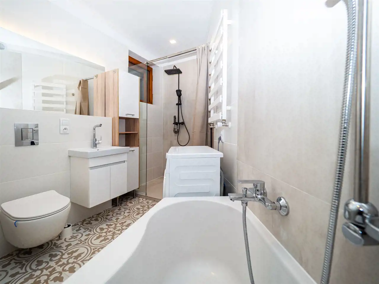 - łazienka (wanna + prysznic walk-in z deszczownicą)