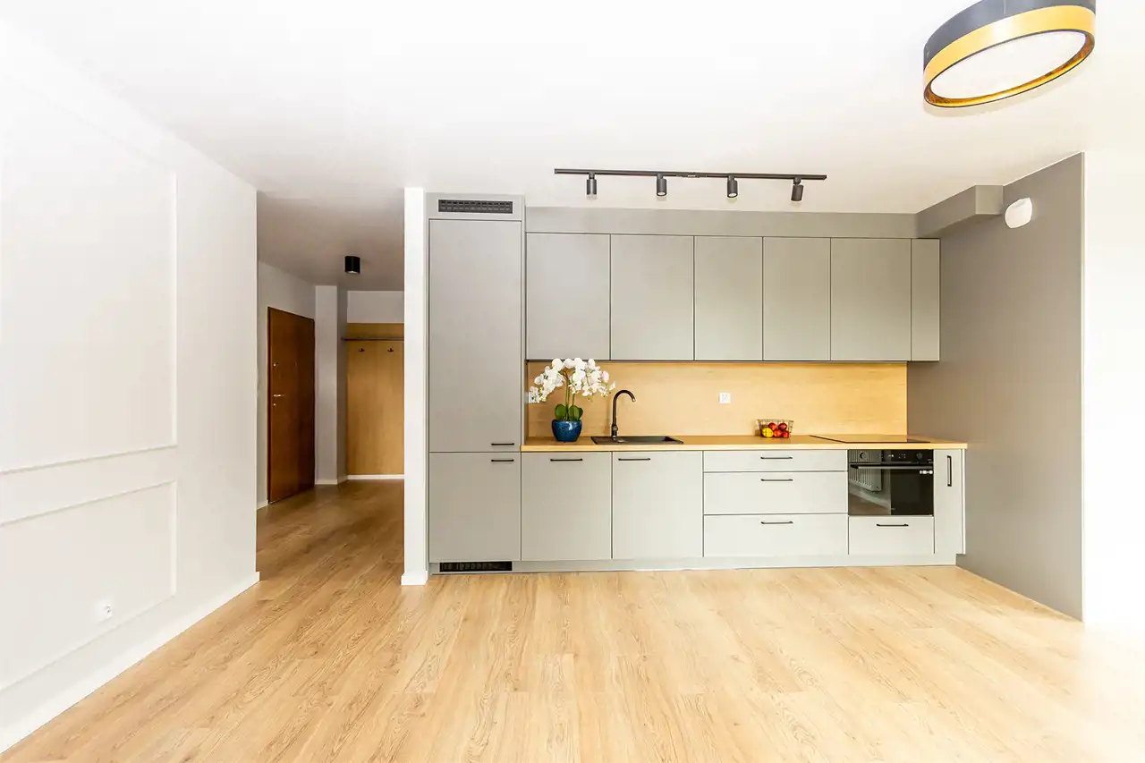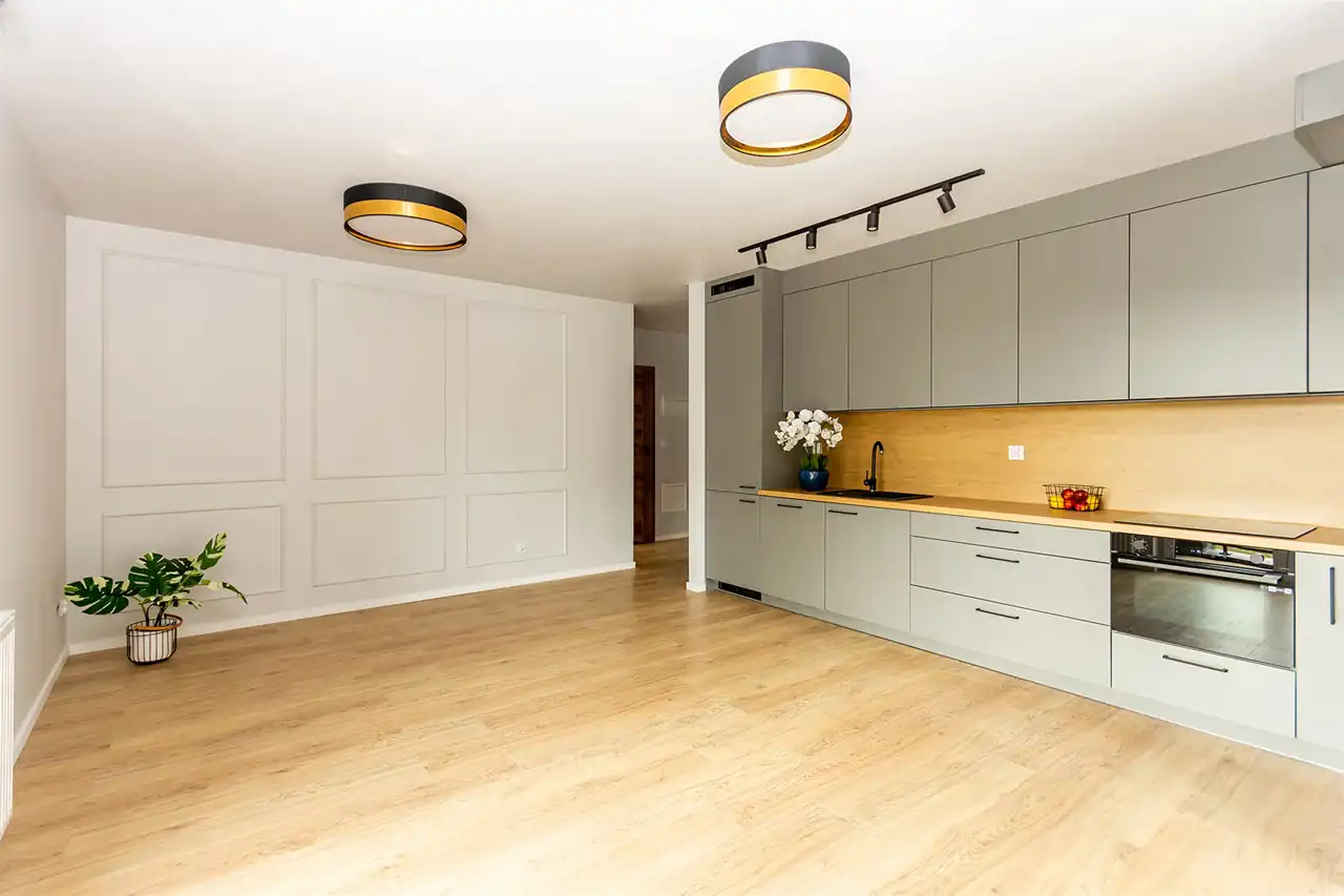 przestronny salon z aneksem kuchennym