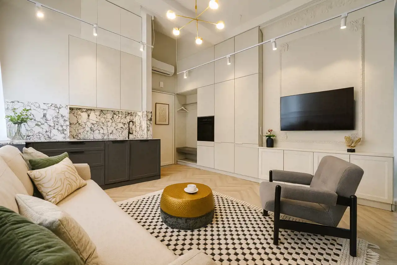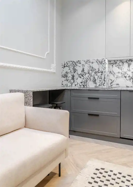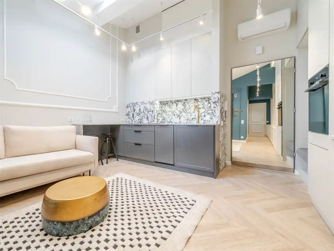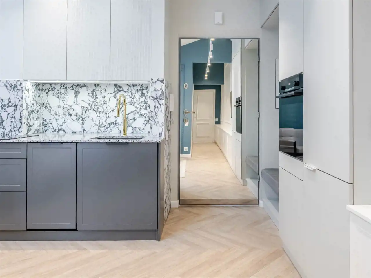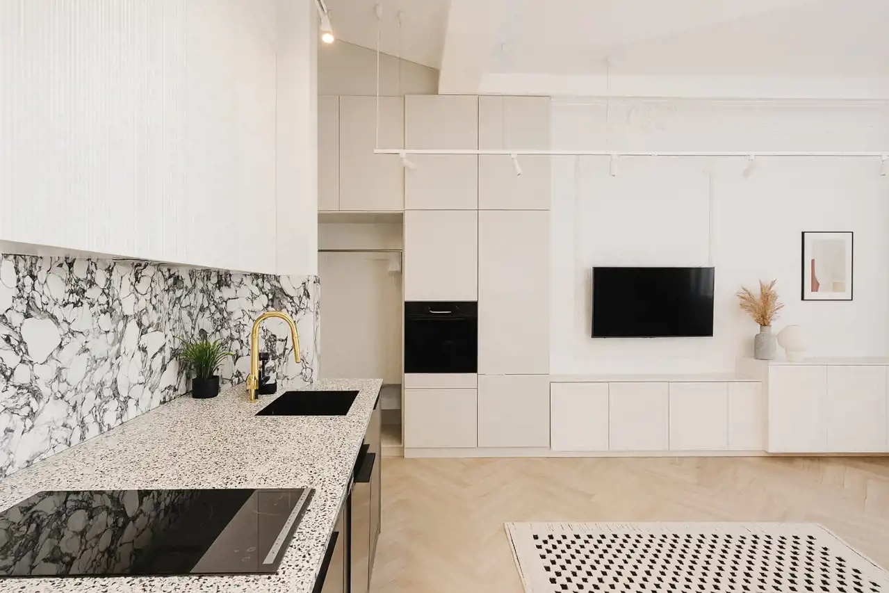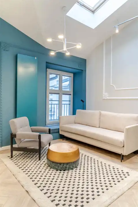 wysoki standard premium, apartament projektowany przez architekta wnętrz z użyciem wspaniałych materiałów np płytki Macieja Zienia, lastriko, marmur, w odrestaurowanej kamienicy z windą