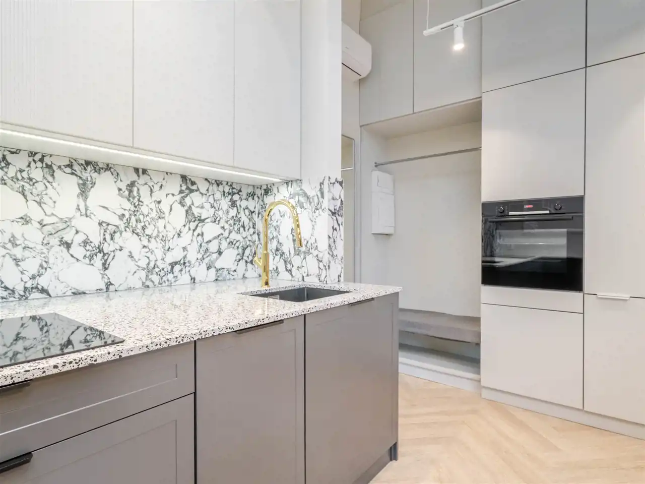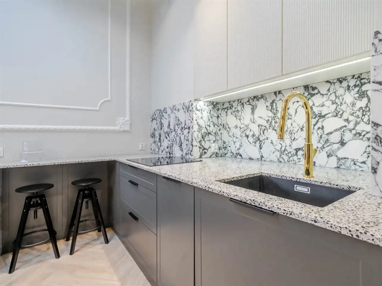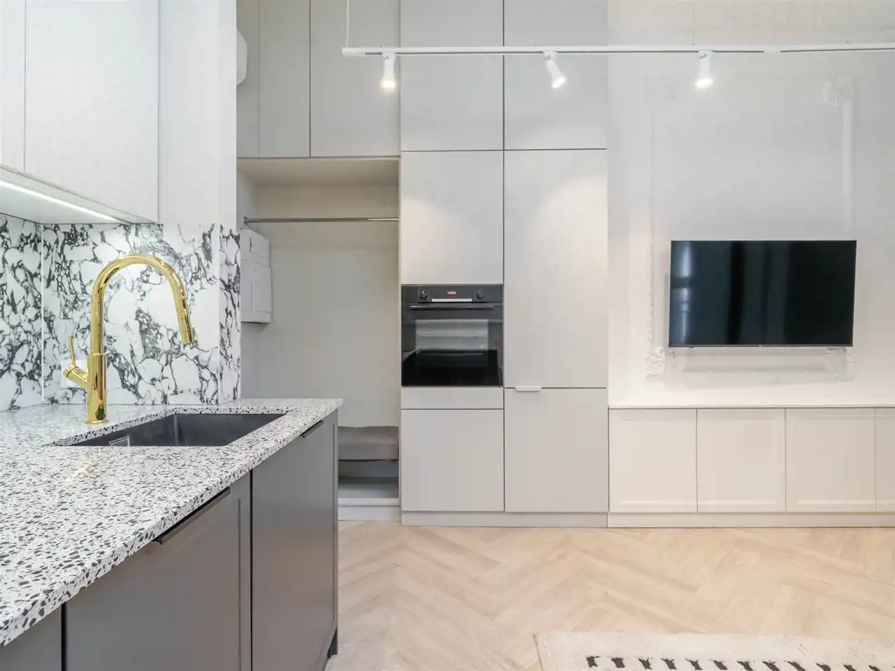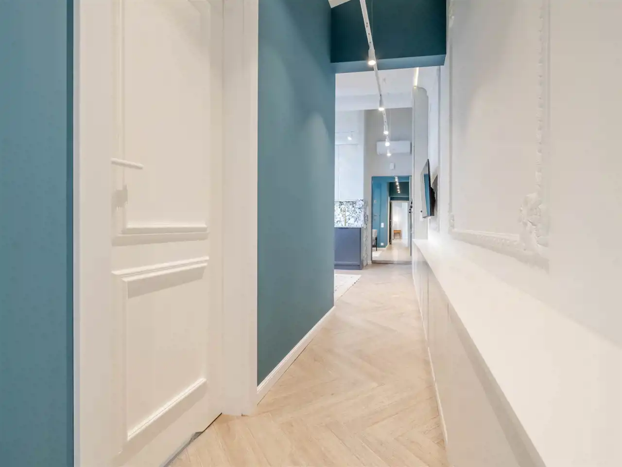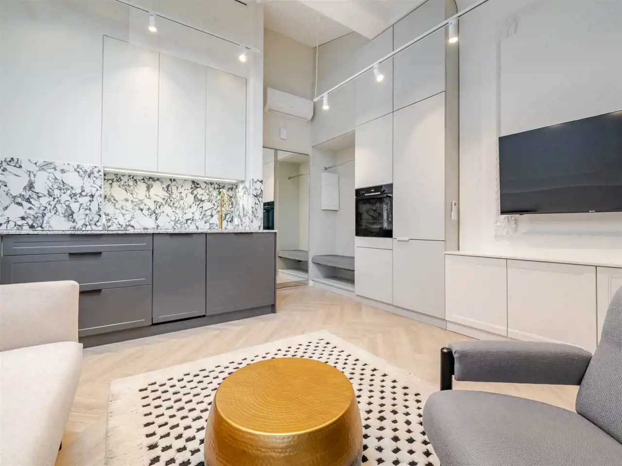 wysoki standard premium, apartament projektowany przez architekta wnętrz z użyciem wspaniałych materiałów np płytki Macieja Zienia, lastriko, marmur, w odrestaurowanej kamienicy z windą