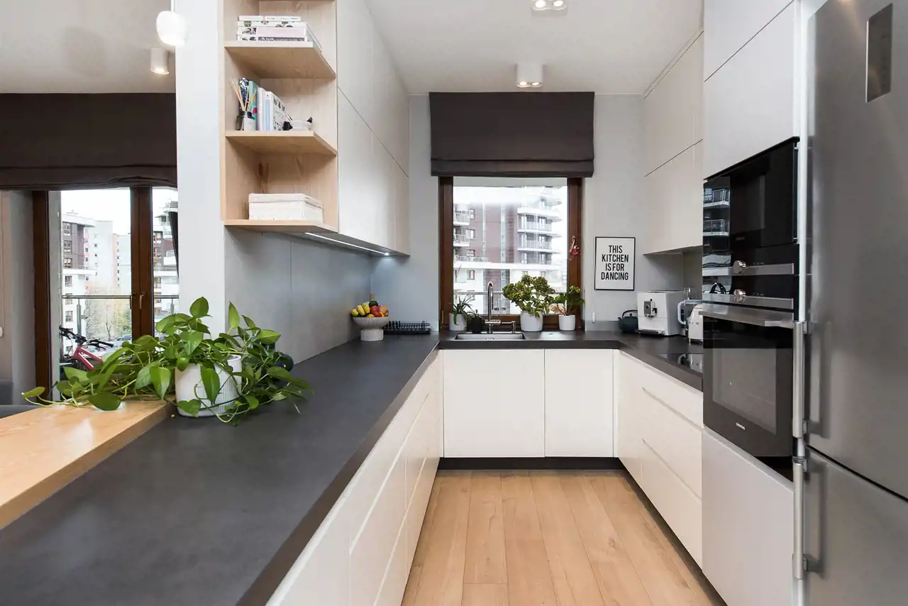 Aneks kuchenny z oknem, umeblowany i wyposażony w sprzęt AGD
